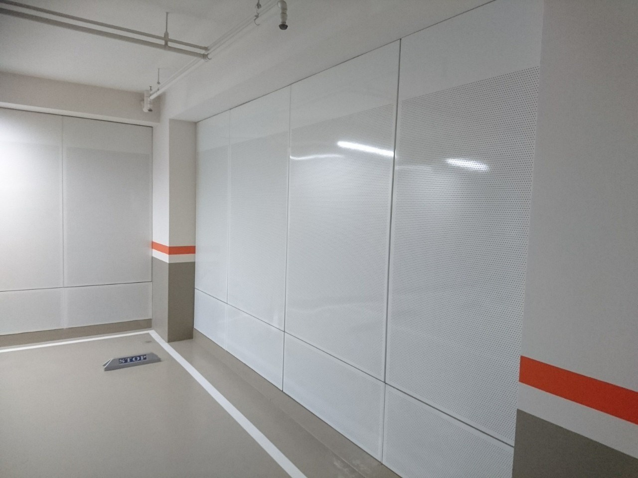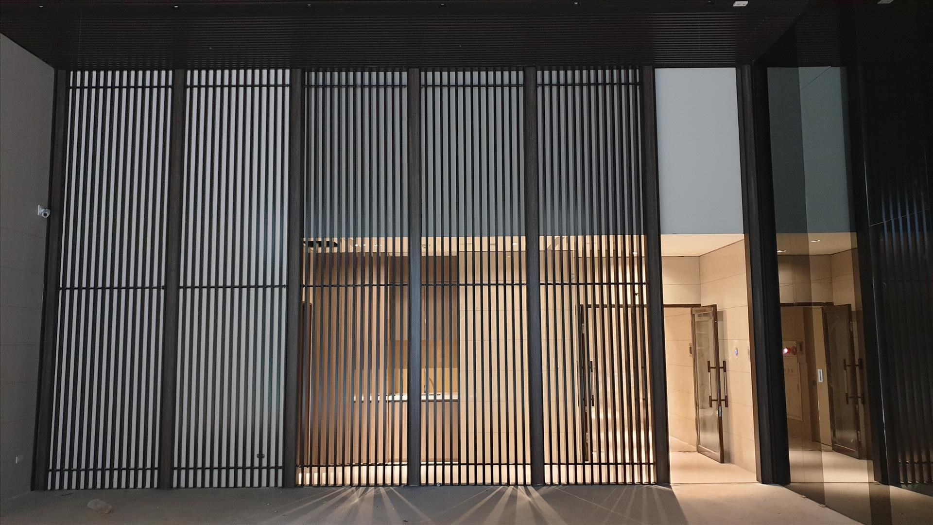 立信工-立天下 不鏽鋼烤漆格柵屏風與燈箱
