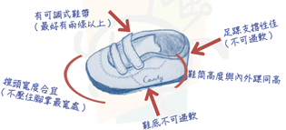 1. 鞋底不可過軟:鞋底應夠硬能支撐孩子的體重,特別是在追逐跑跳的活動時也能夠有吸震的效果,足弓才不易塌陷。