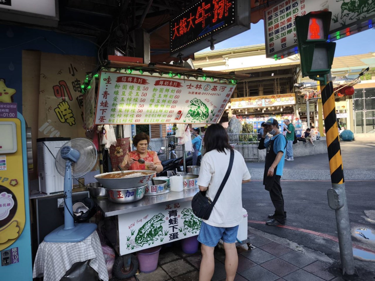 在熱鬧的士林夜市,王記青蛙下蛋已有多達六家直營門市,顯見品牌在在地市場的強大實力與消費者支持。