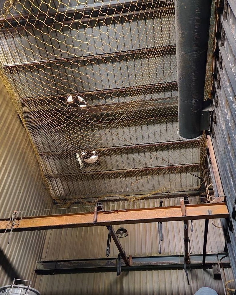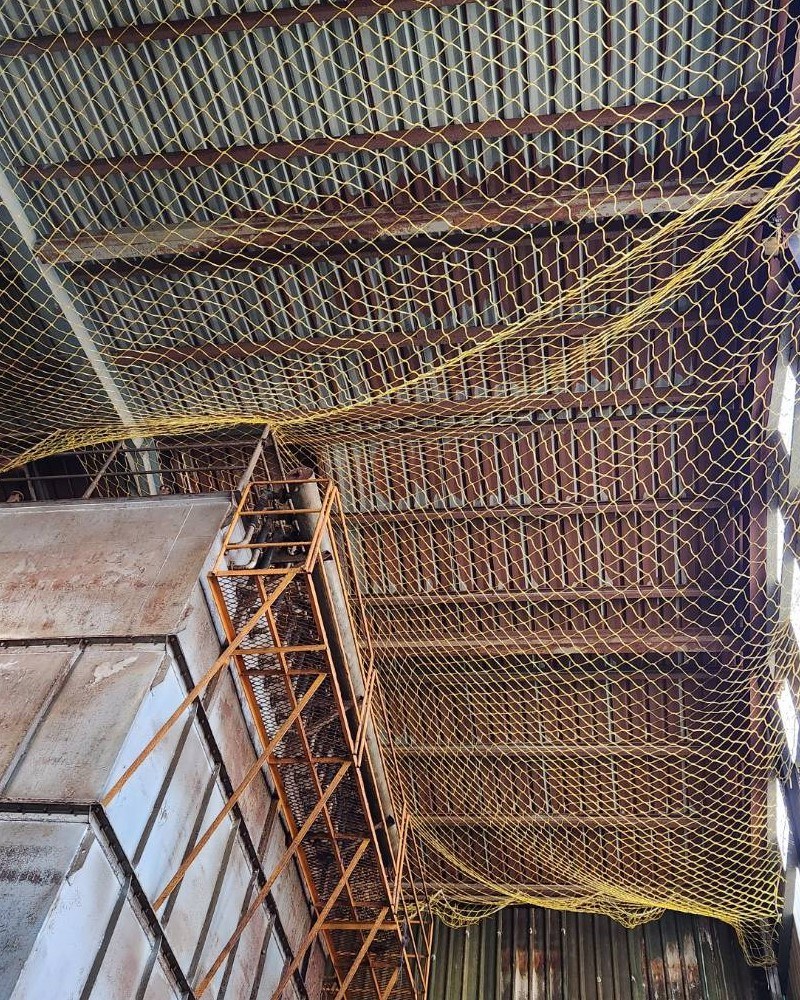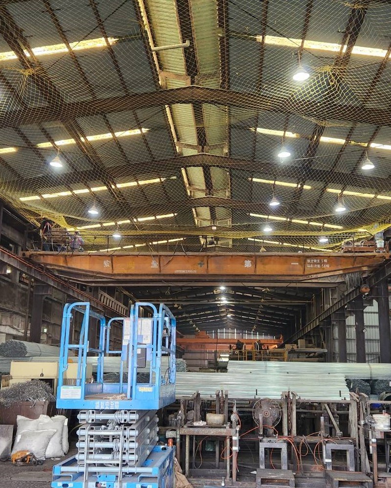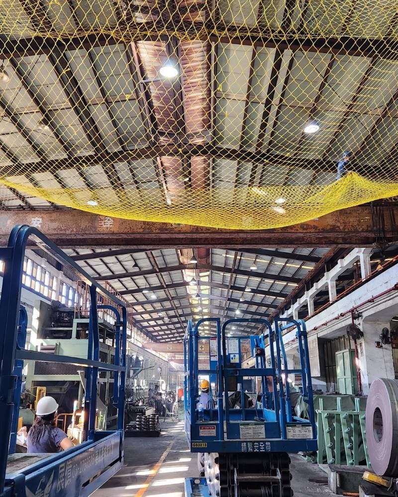 用於鐵皮屋更換工程的安全設施,防止人員或物品從高空墜落,以減少事故傷害風險。