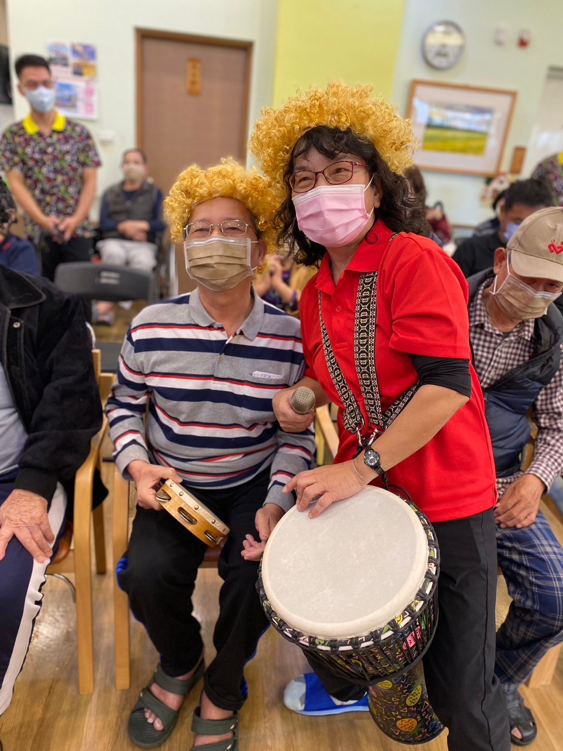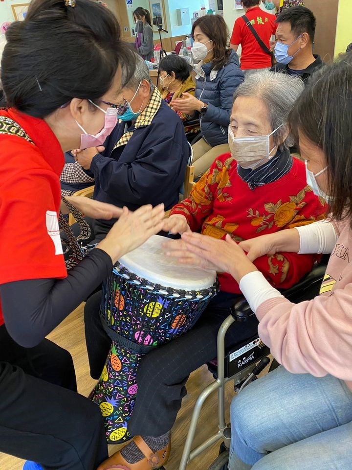 看到長輩們賣力的打著鼓及跟者音樂擺動!