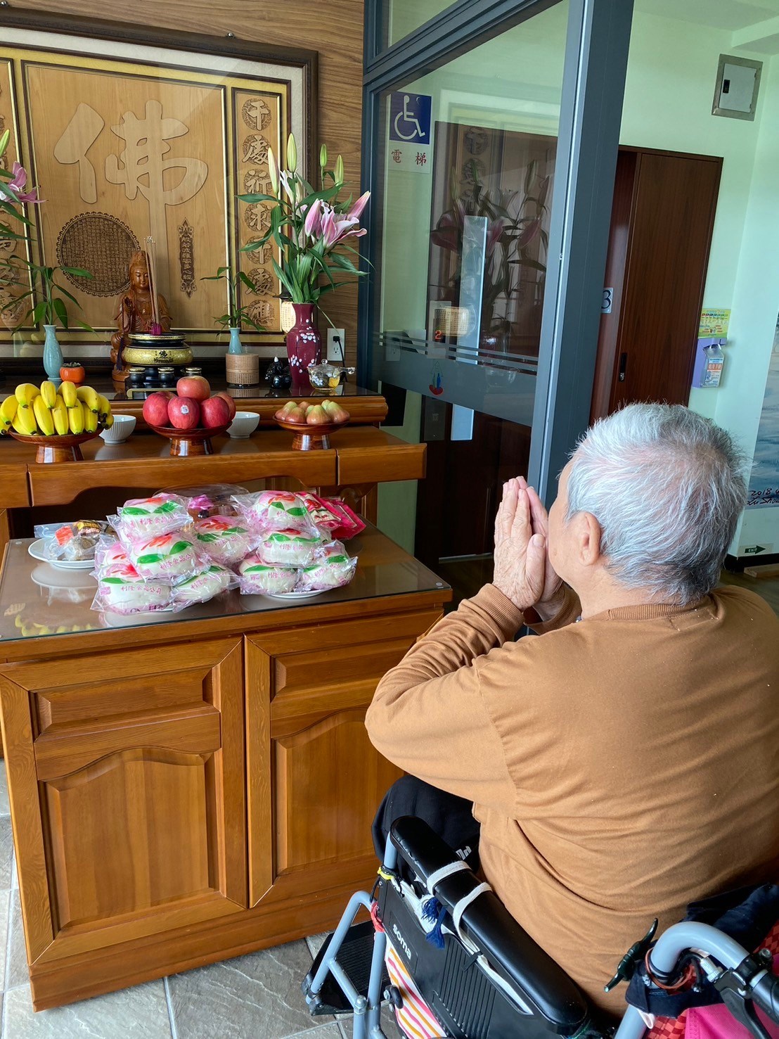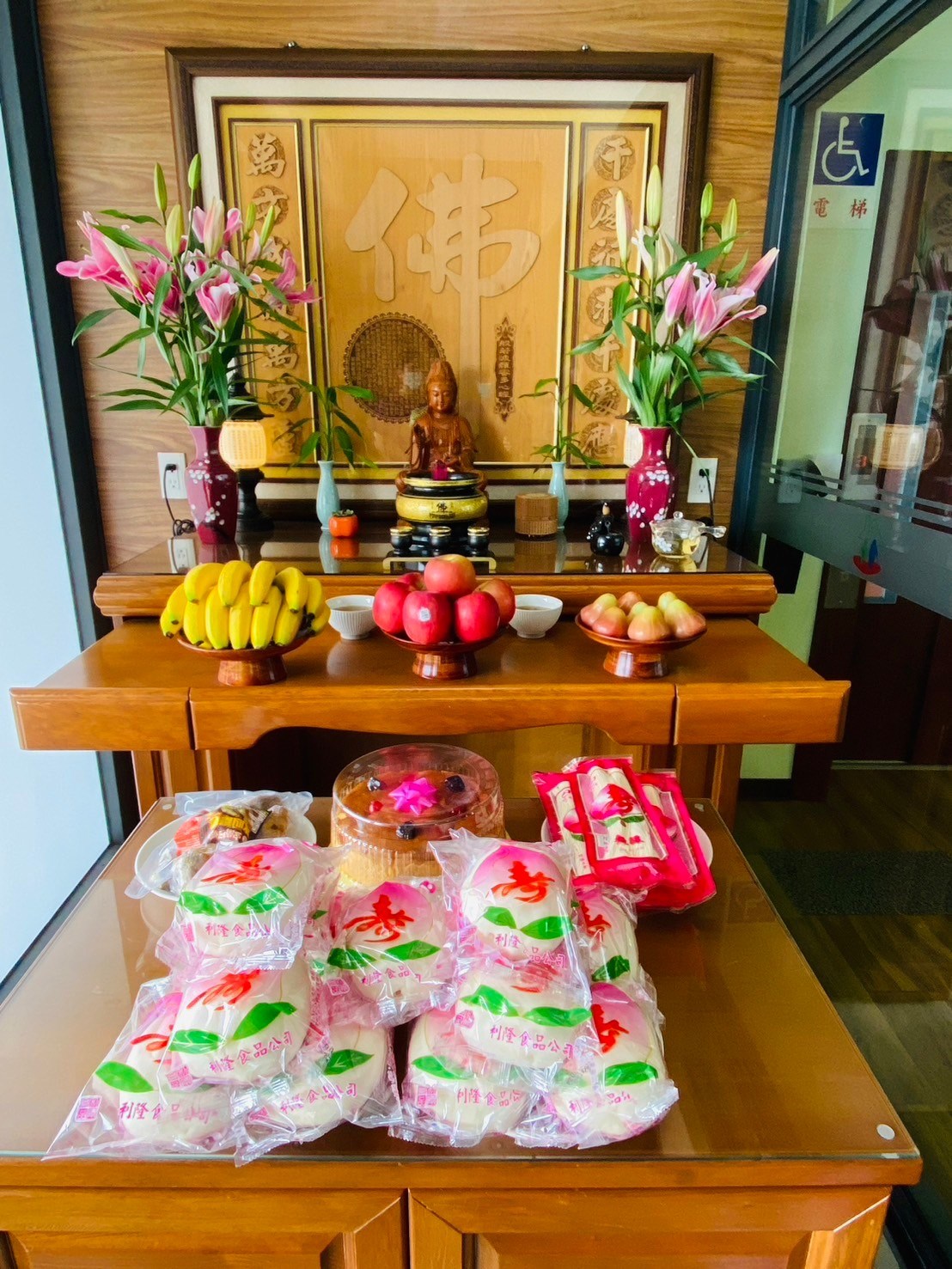 觀世音菩薩誕生日 2024/03/28 分享到 農曆二月十九日 觀世音菩薩誕生日 我們準備了鮮花、壽桃 由院長率領全體員工 一同祝壽 祈求菩薩能庇佑機構裡的所有長輩及同仁身體健康 我們也引領長輩 來到佛堂祝壽 希望長輩的心靈能有所寄託 回前頁
