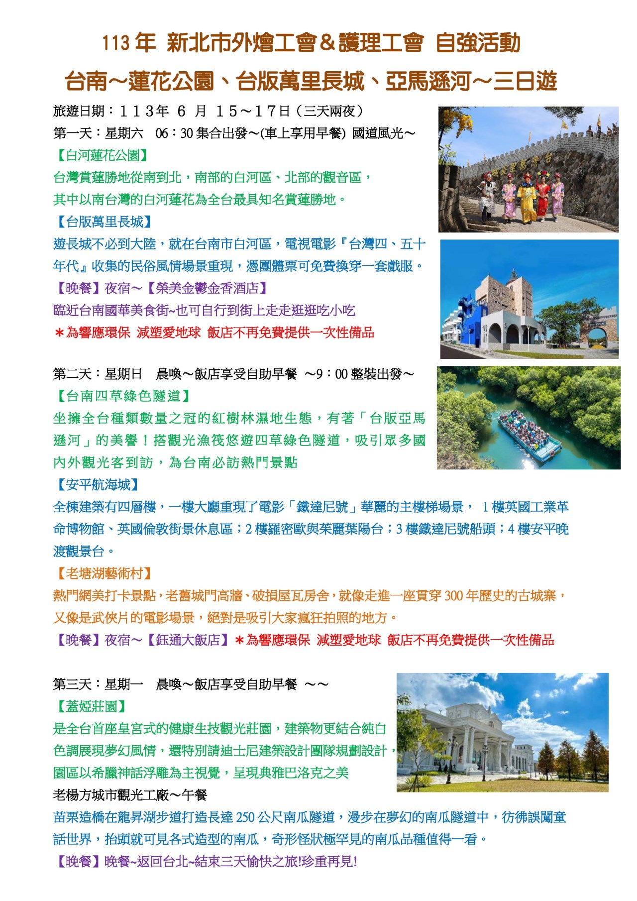 台南~蓮花公園、台版萬里長城、亞馬遜河~三日遊