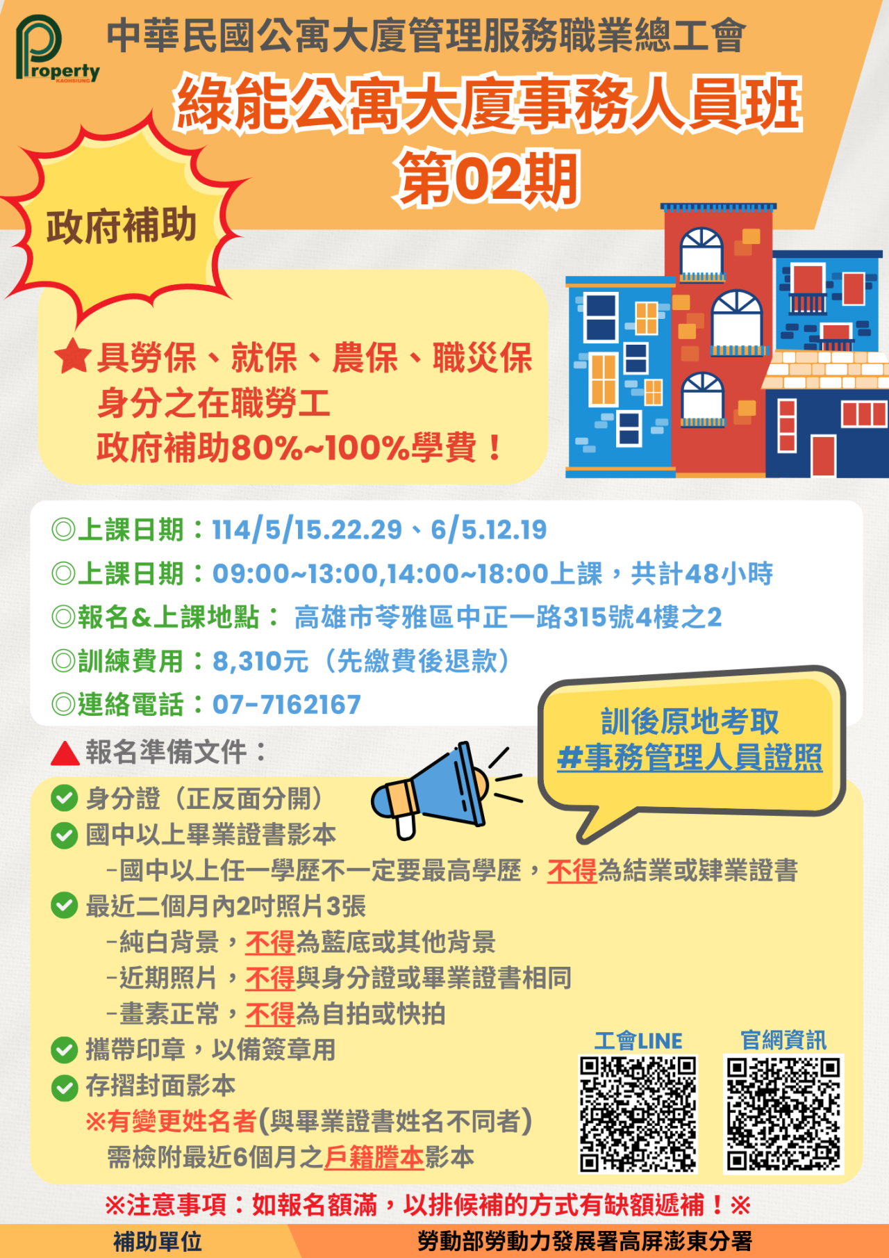 政府現今提倡的綠建築、社區綠化及節能減碳的公寓大廈環境生態,整合公寓大廈循環經濟及綠建築法規等內容,納入公寓大廈事務人員的課程中,期許讓學員在未來工作上能實際運用,並提升學員的從業能力。