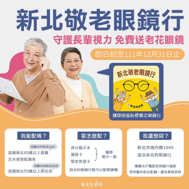 設籍新北65歲以上長輩(民國46年前出生),並未接受過配鏡服務