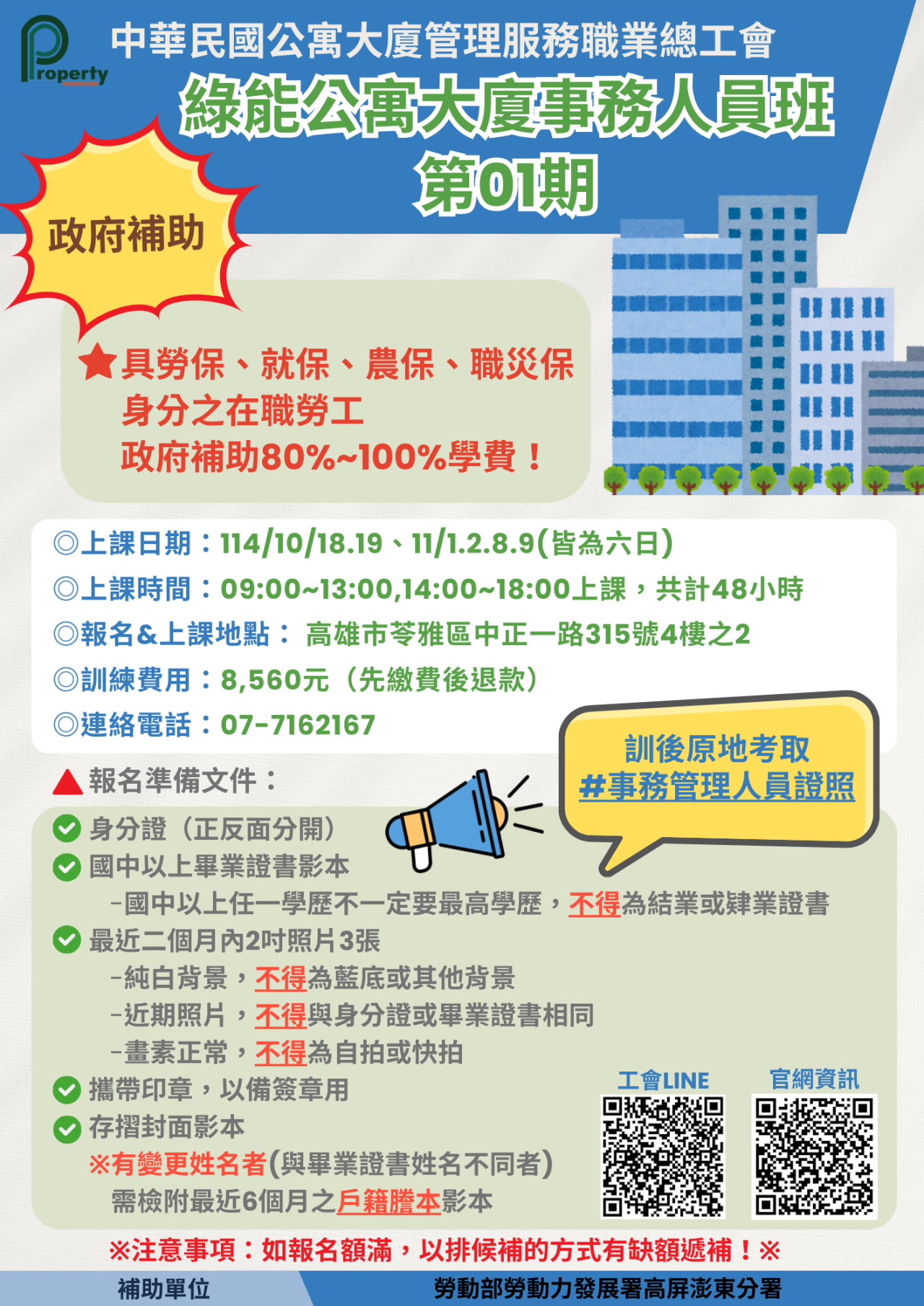 政府現今提倡的綠建築、社區綠化及節能減碳的公寓大廈環境生態,整合公寓大廈循環經濟及綠建築法規等內容,納入公寓大廈事務人員的課程中,期許讓學員在未來工作上能實際運用,並提升學員的從業能力。