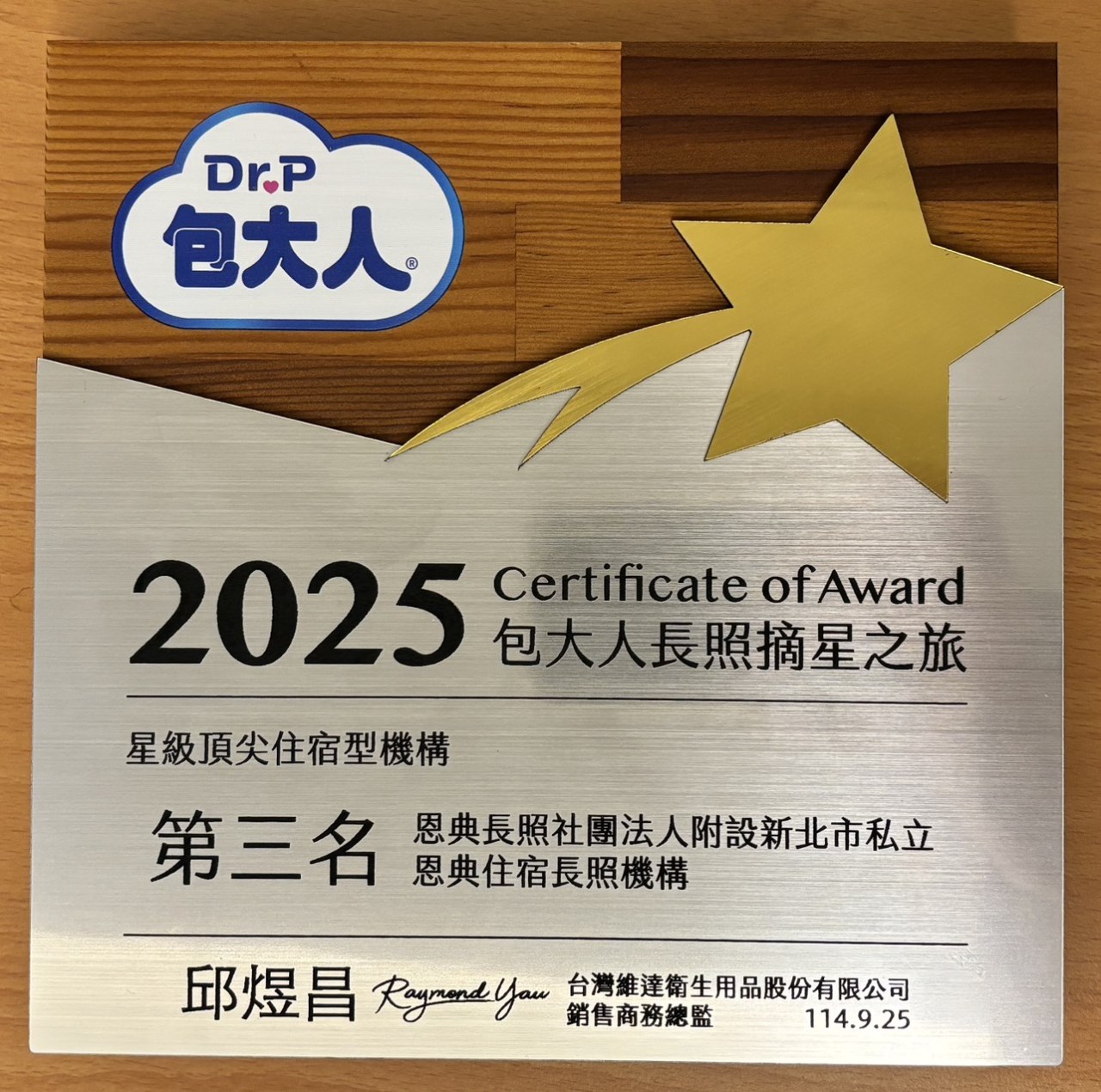 賀! 恩典住宿長照機構榮獲2025年頂尖住宿型機構第三名