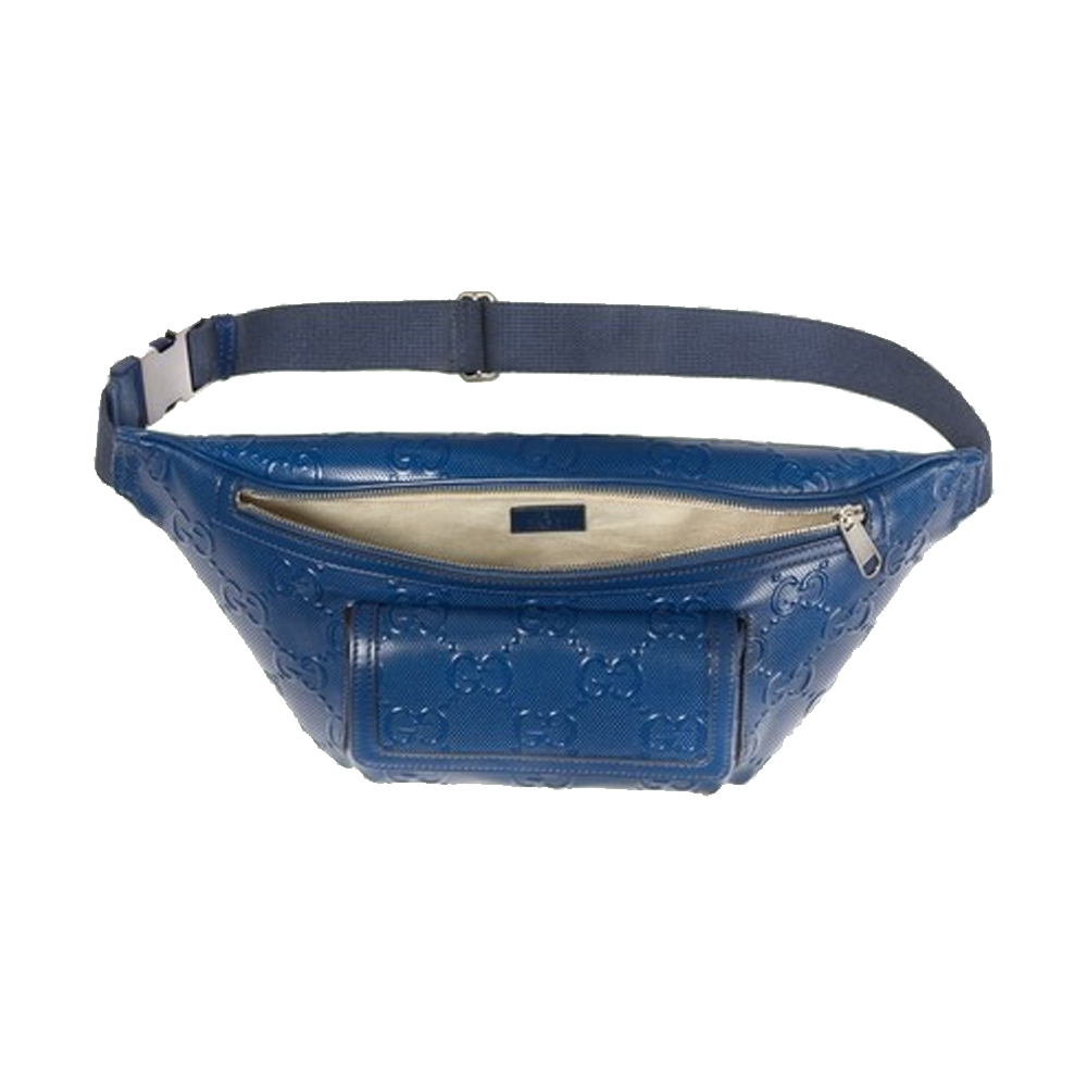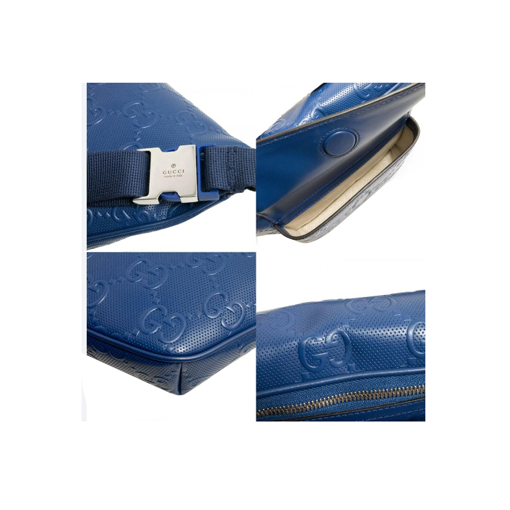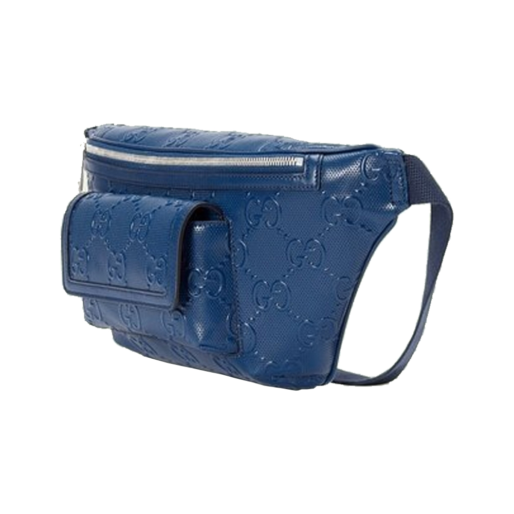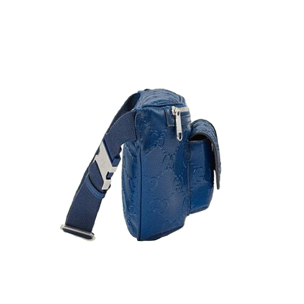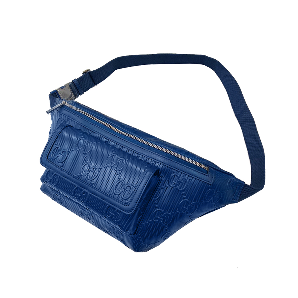 【GUCCI 古馳】645093 經典GG印花壓紋腰包/斜背包(藍色)