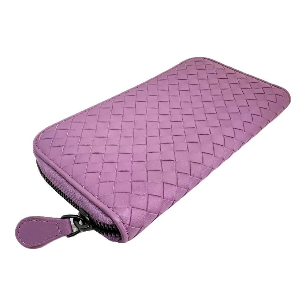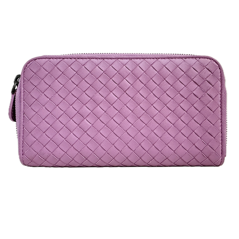 【BOTTEGA VENETA 寶緹嘉】518389 經典編織小羊皮拉鍊長夾(淡紫)