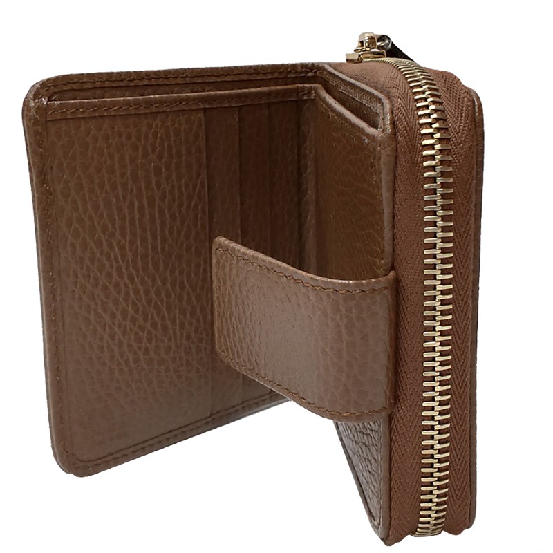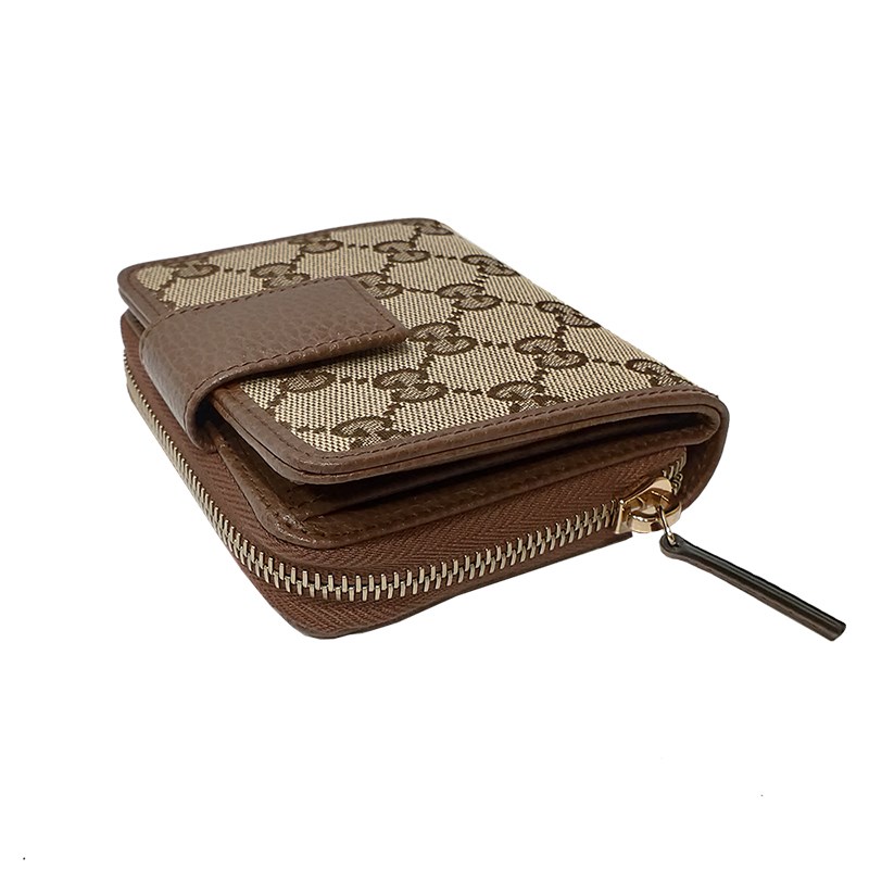 【GUCCI 古馳】346056 經典雙G緹花皮飾邊扣式短夾