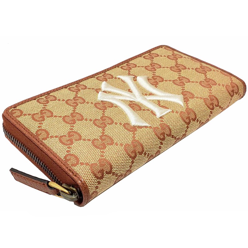 【GUCCI 古馳】547791 NY Yankees大聯盟聯名款拉鍊長夾典LOGO圖案拉鍊長夾
