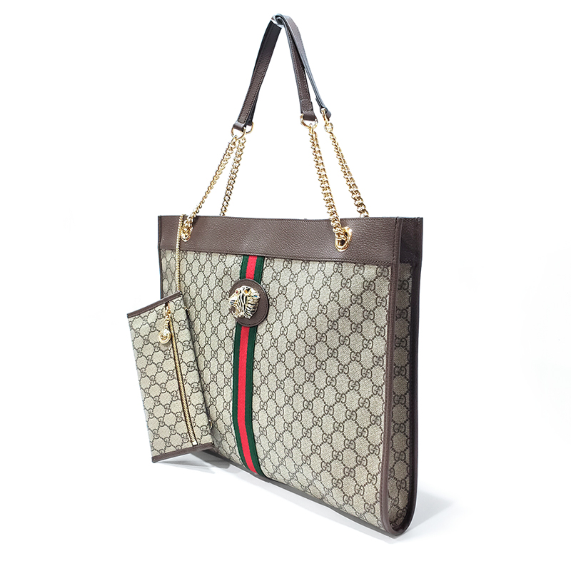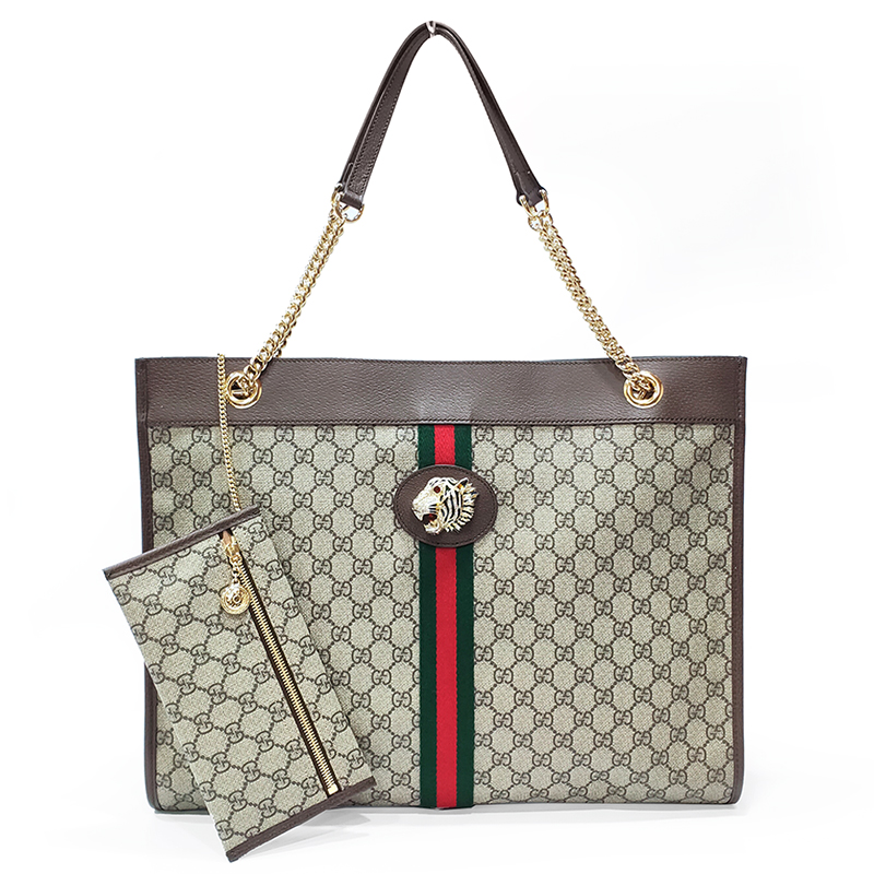 【GUCCI 古馳】537219 經典GG LOGO帆布Rajah系列水鑽虎頭托特包(棕色)