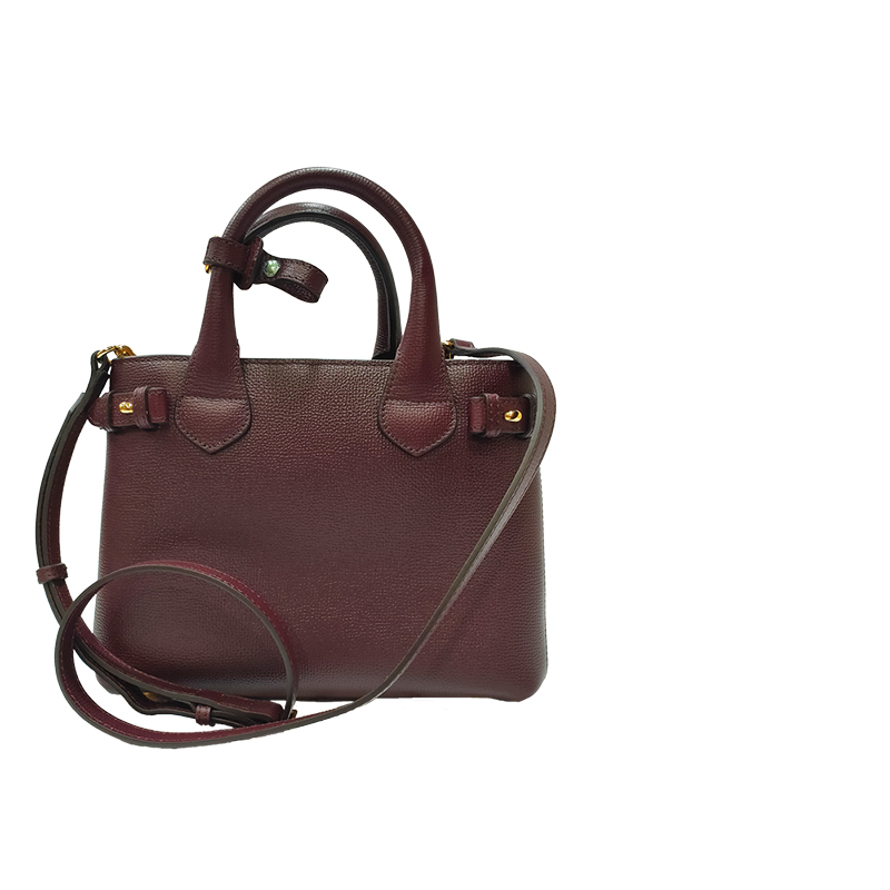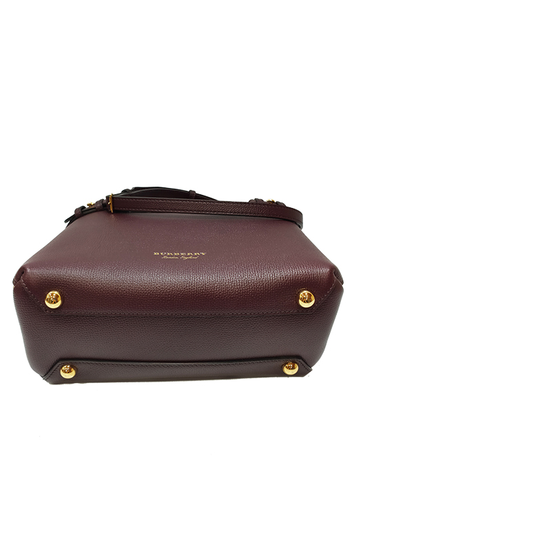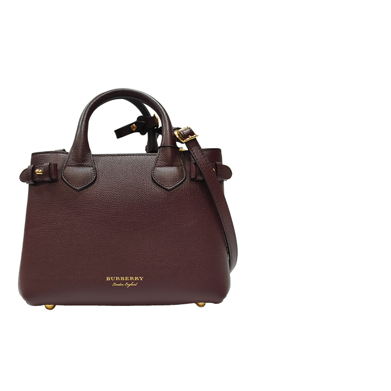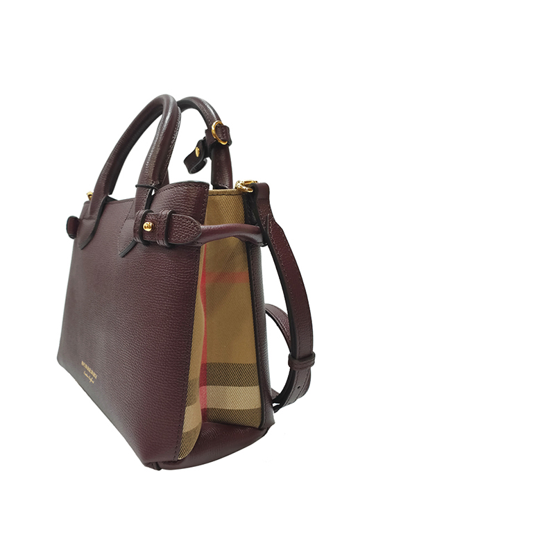 【BURBERRY 巴寶莉】40237041 經典Banner皮革拚接格紋中型手提包/斜背包(酒紅)