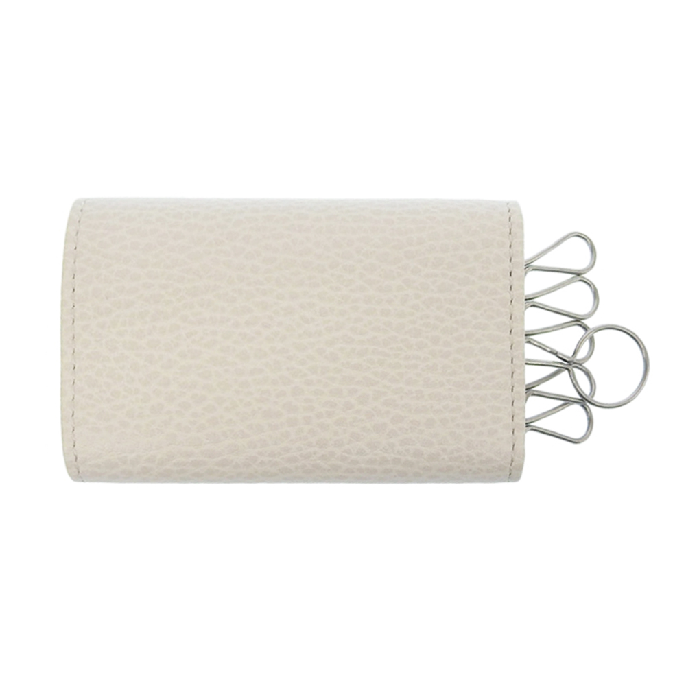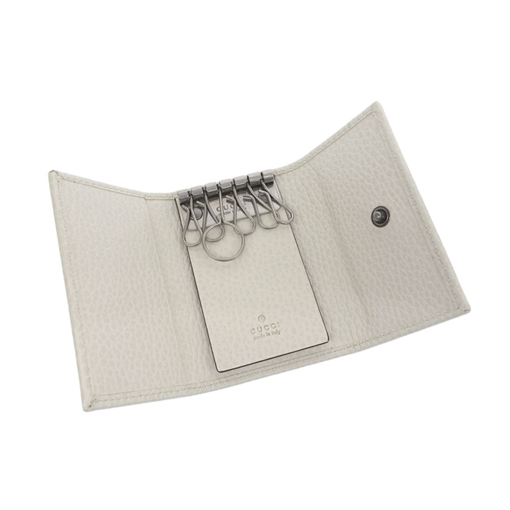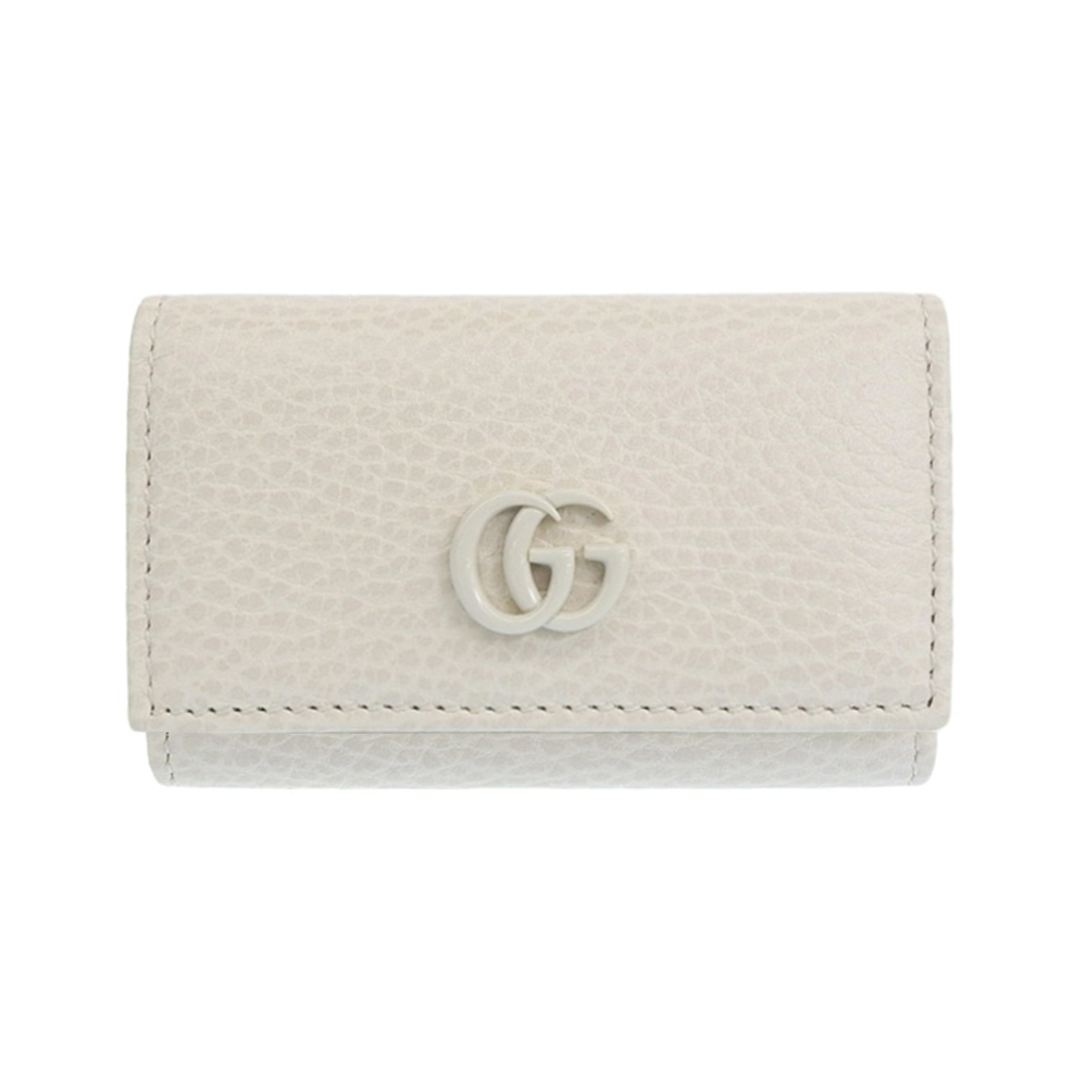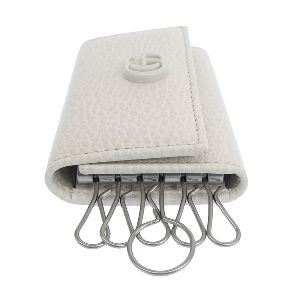 【GUCCI 古馳】456118 經典GG LOGO荔枝紋牛皮暗扣鑰匙包(白色)