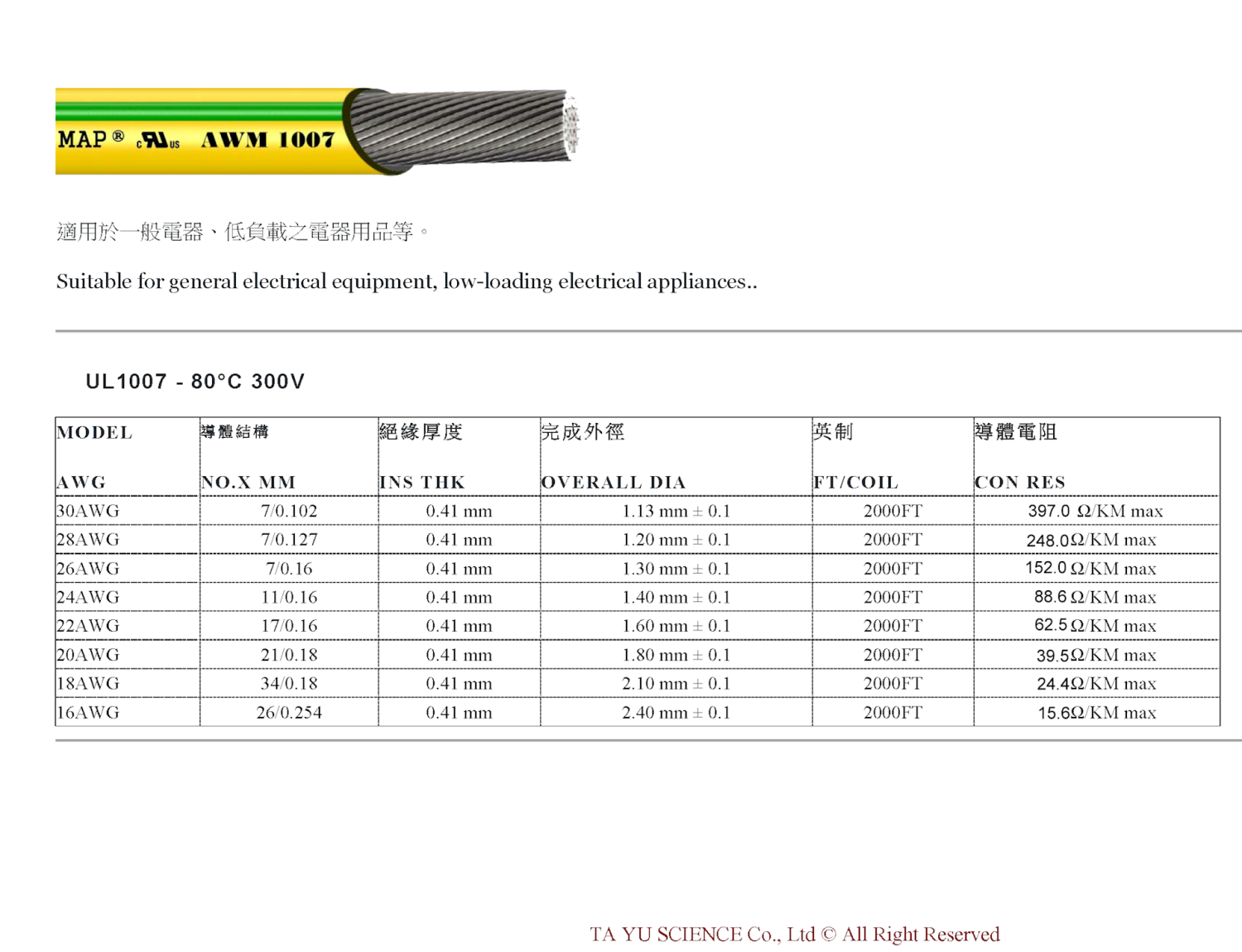 5.1 MAP® UL1007 PVC Wire 80℃ 300V