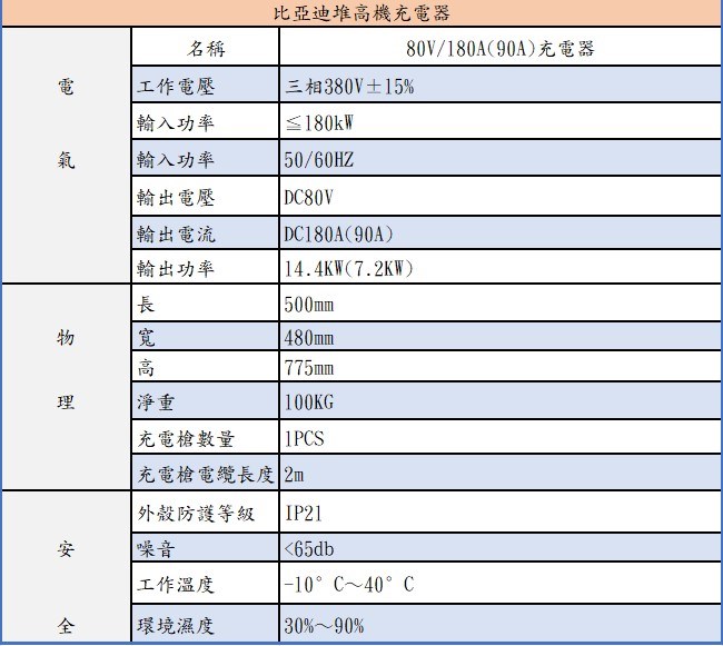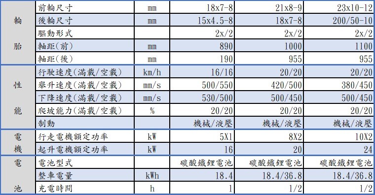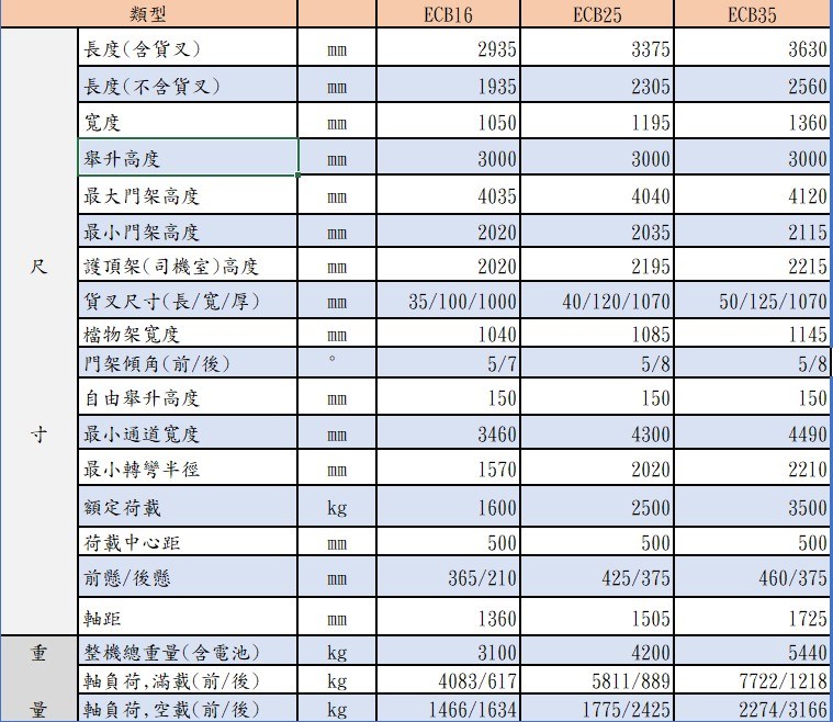 BYD 電動平衡式堆高機ECB16/25/35 規格表