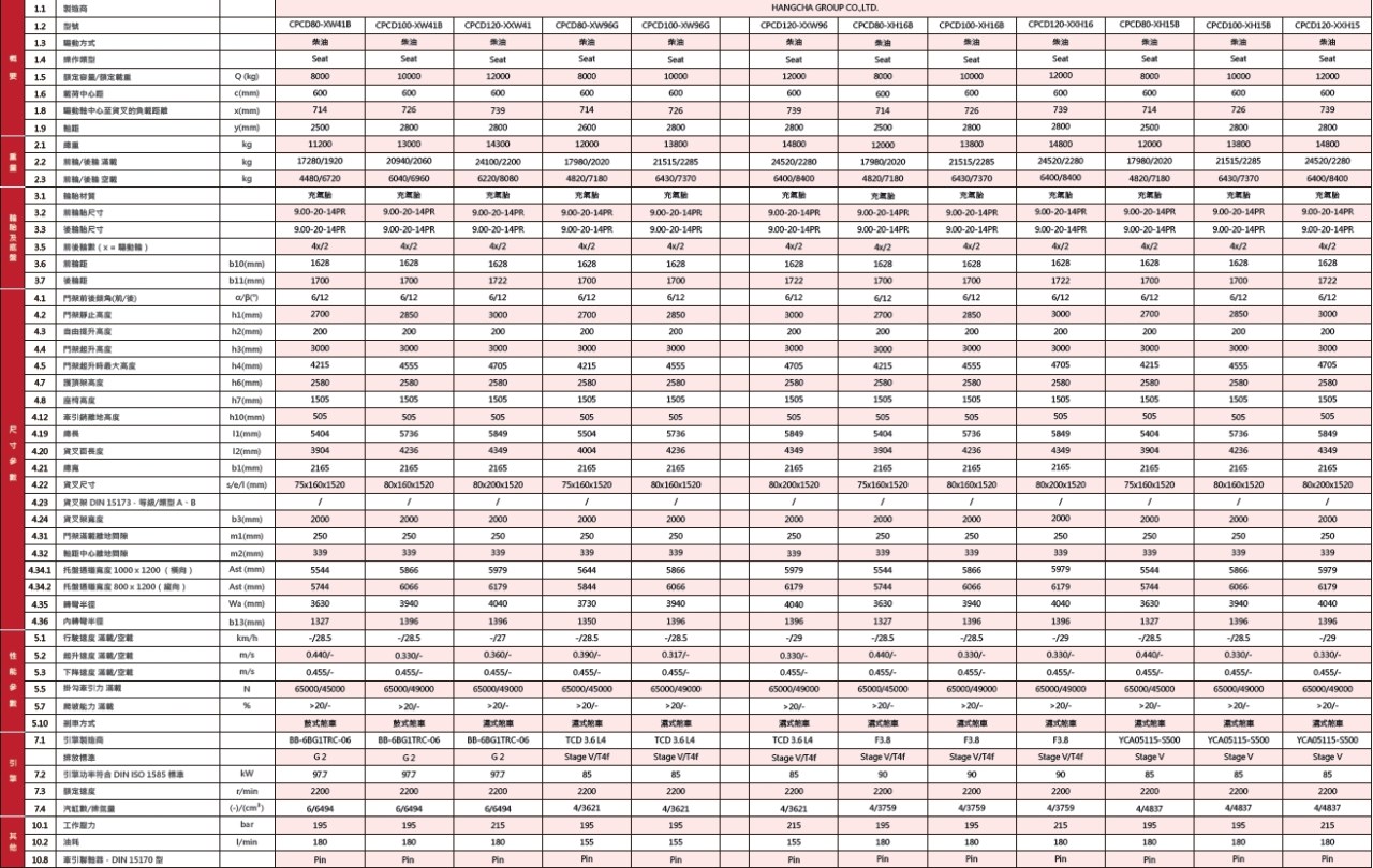 HANGCHA-XF系列 8.0-12.0噸柴油堆高機 規格表