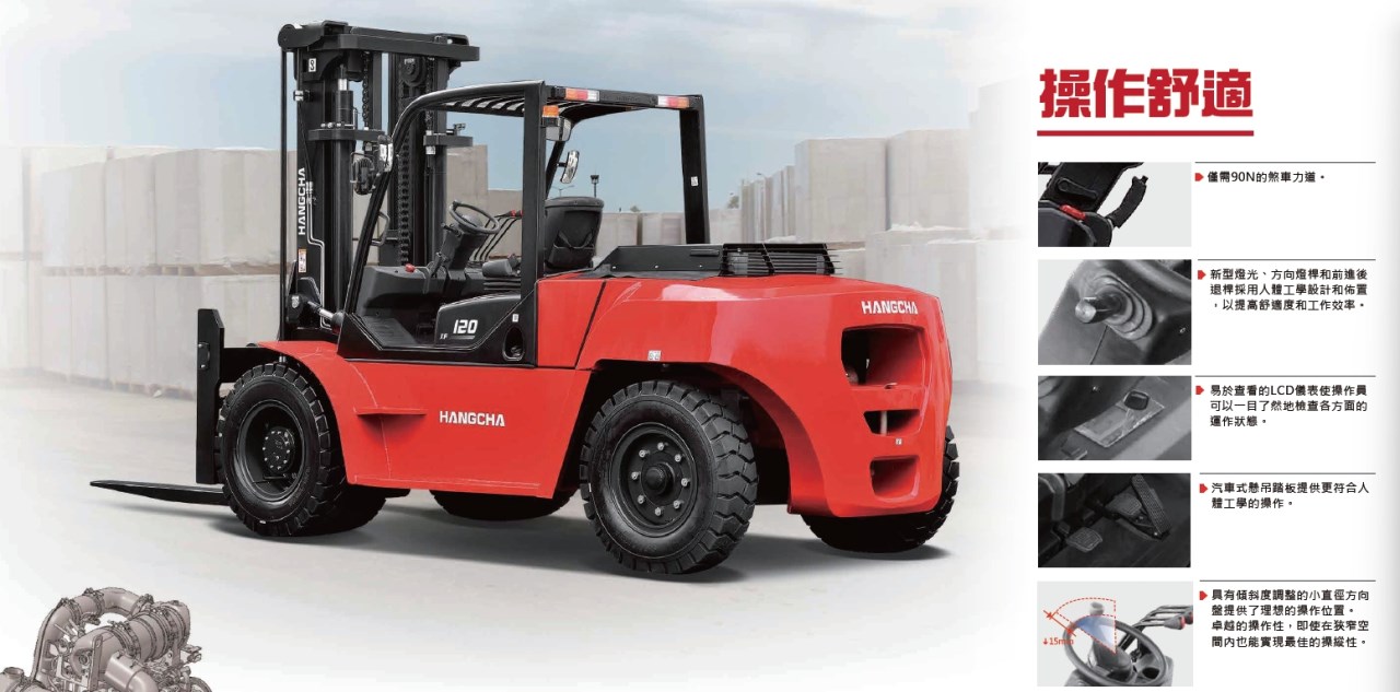 HANGCHA 杭叉堆高機可以滿足客戶對環境價值、創新和性能的需求。針對每款引擎型號進行了優化,最大限度地提高了效率和可靠性。