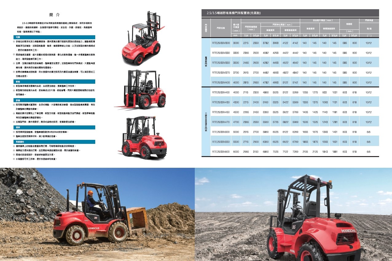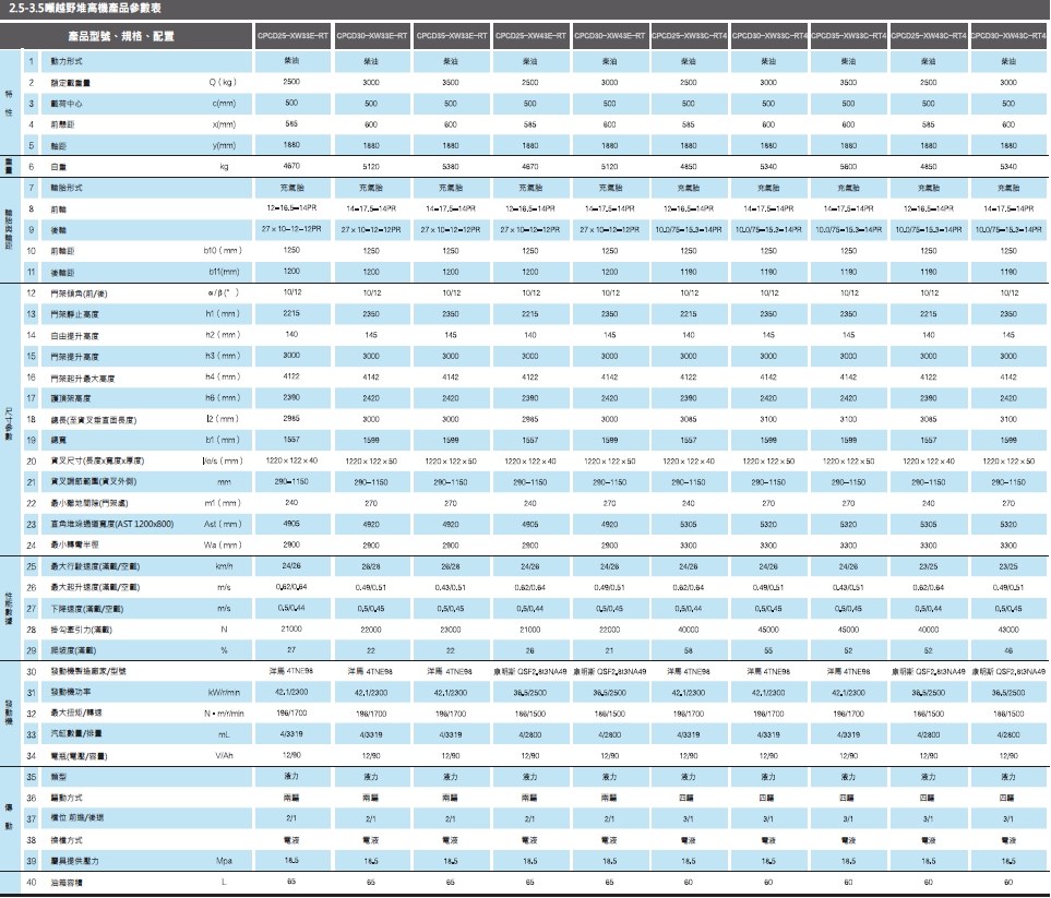 HANGCHA-XF系列 2.5-3.5噸越野堆高機 規格表