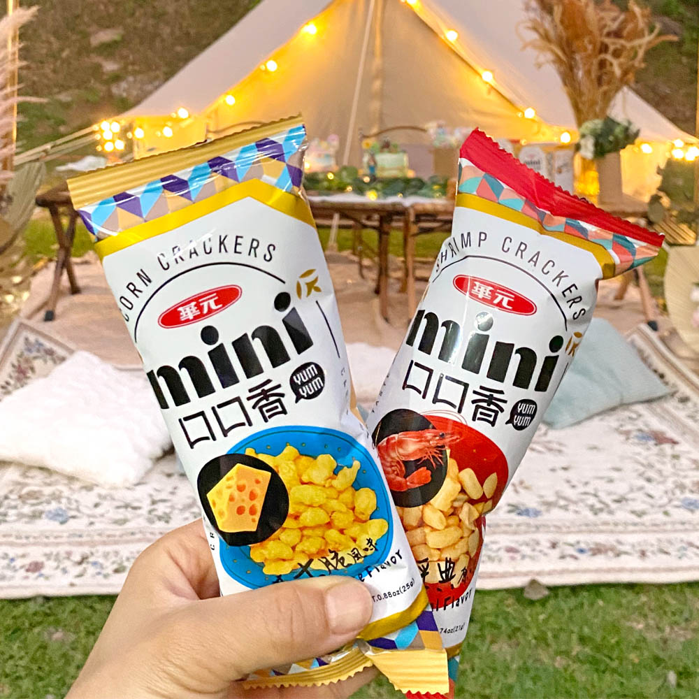 內容物名稱 麵粉、樹薯澱粉、玉米澱粉、椰子油、複合調味料【麥芽糊精、調味劑(L-麩酸鈉、琥珀酸二鈉、5’-次黃嘌呤核苷磷酸二鈉、5’-鳥嘌呤核苷磷酸二鈉、DL-胺基丙酸、胺基乙酸)、砂糖、醬油粉(釀造醬油、麥芽糊精、食鹽、砂糖、琥珀酸二鈉、5’-次黃嘌呤核苷磷酸二鈉、5’-鳥嘌呤核苷磷酸二鈉)、蒜粉、水解大豆蛋白、麻油粉(麥芽糊精、黑麻油、二氧化矽、混和濃縮生育醇(抗氧化劑))、調味劑(無水檸檬酸、食用醋酸、DL-蘋果酸)、白胡椒粉、辣椒粉、甘草粉、葡萄糖、二氧化矽、蔗糖素(甜味劑)】、砂糖、蝦粉、食鹽、碳酸氫鈉、碳酸氫銨、食用黃色五號、混和濃縮生育醇 (抗氧化劑)。