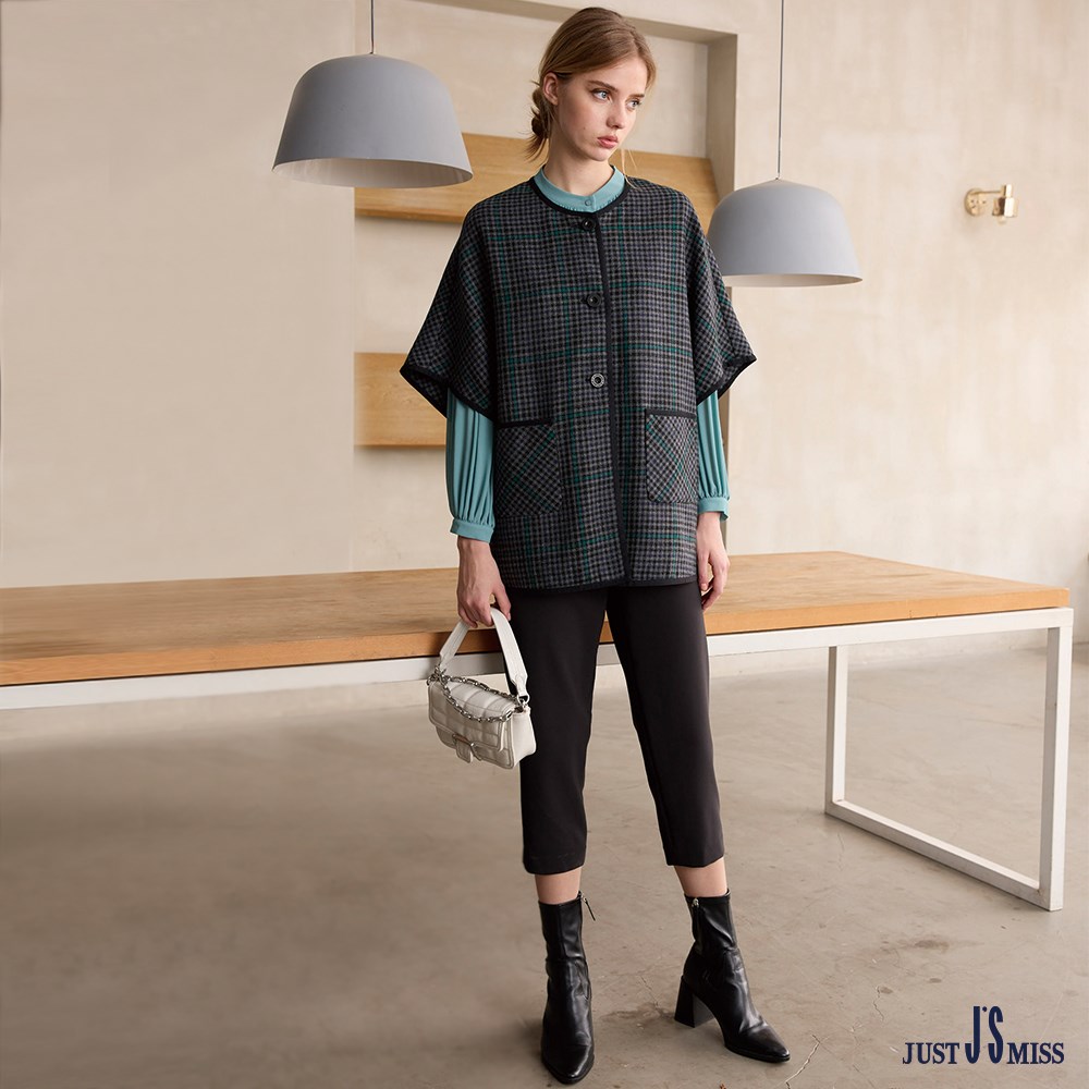典素面九分長褲 前開扣拉鍊後鬆緊設計 附口袋