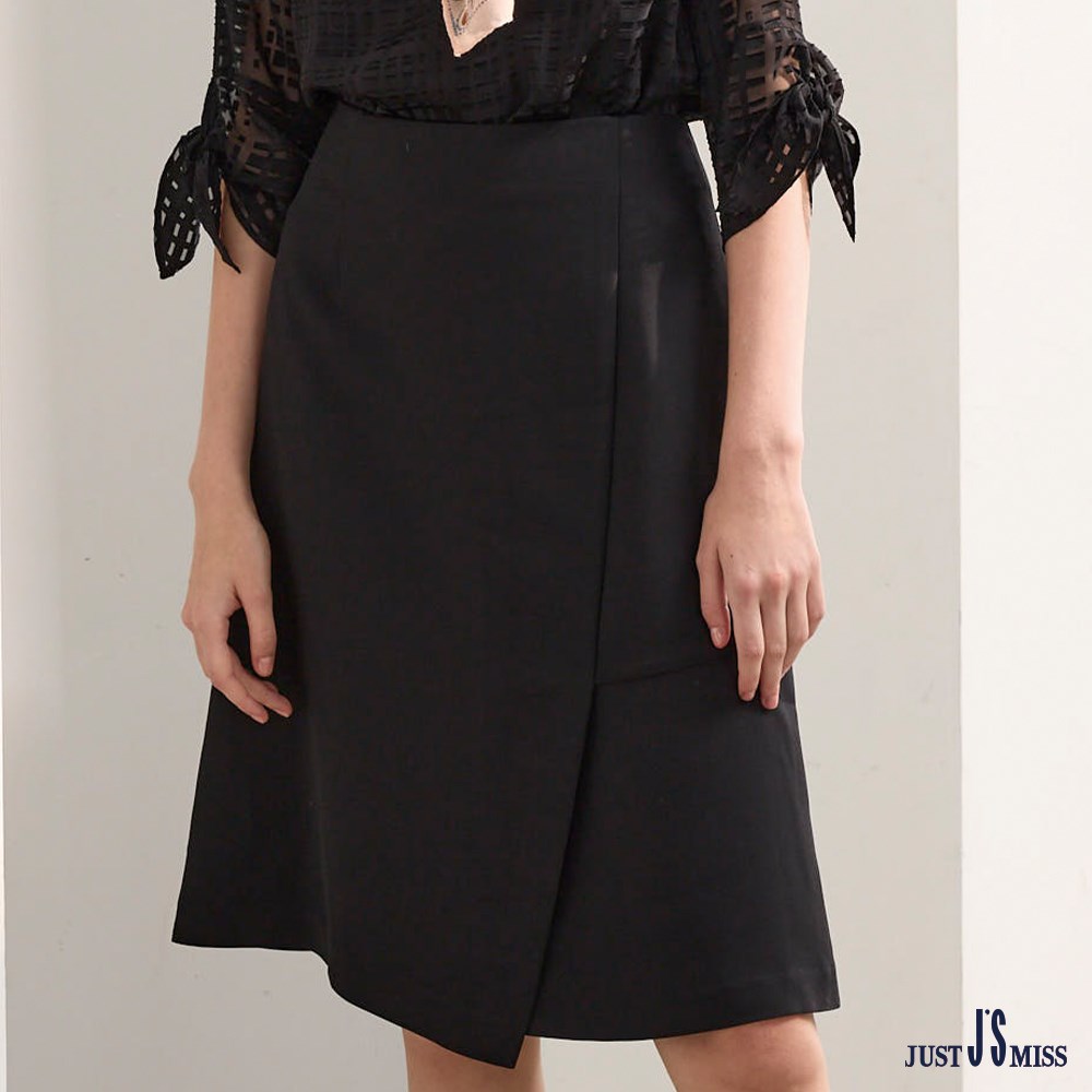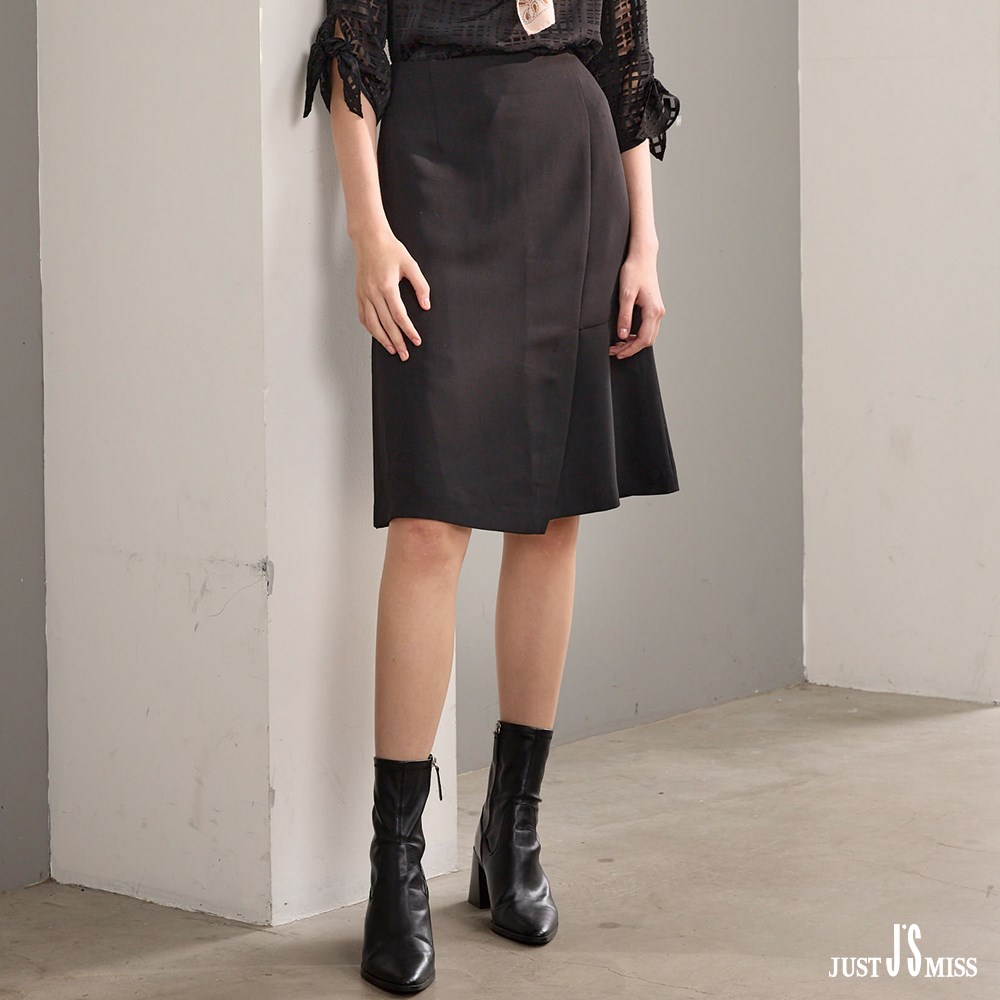 特殊側面修身剪裁拉鍊式直筒素面中長裙