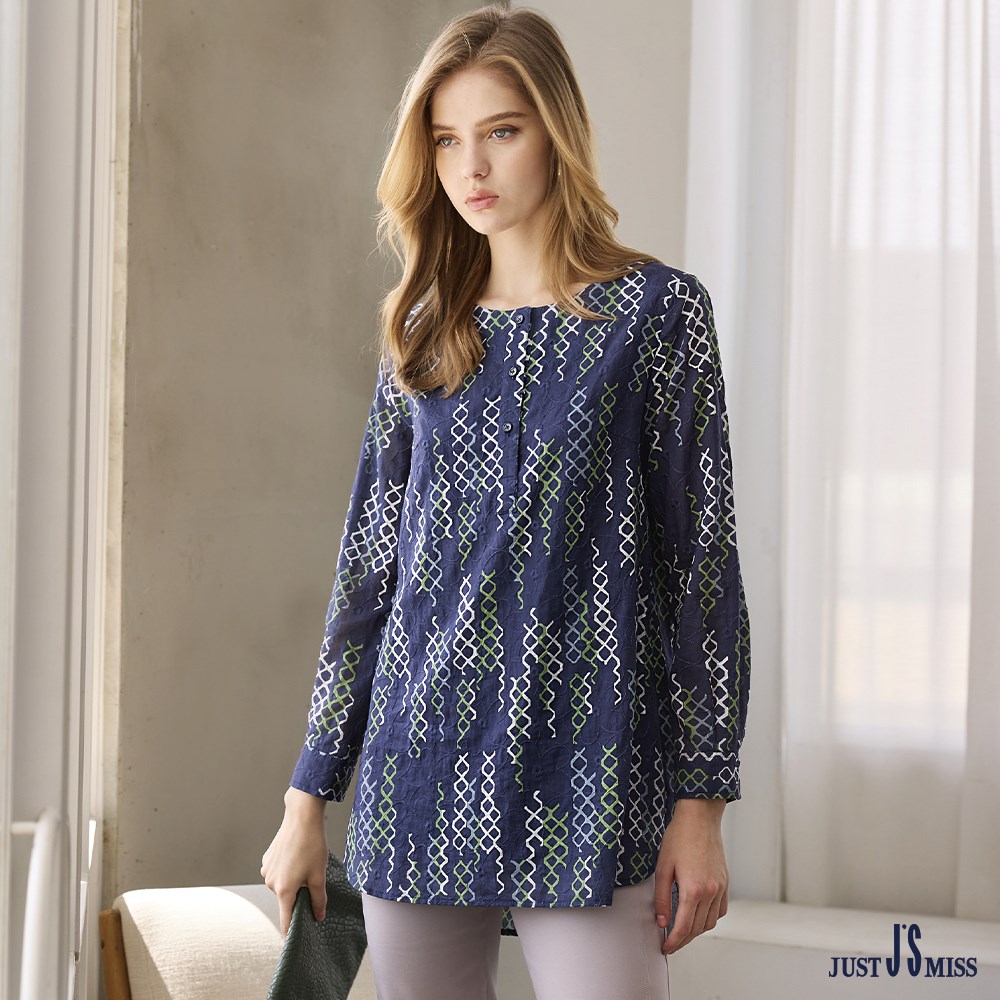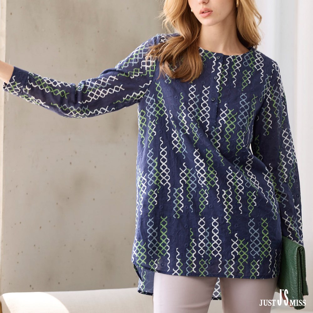 純棉澳洲印花 半開襟長袖上衣