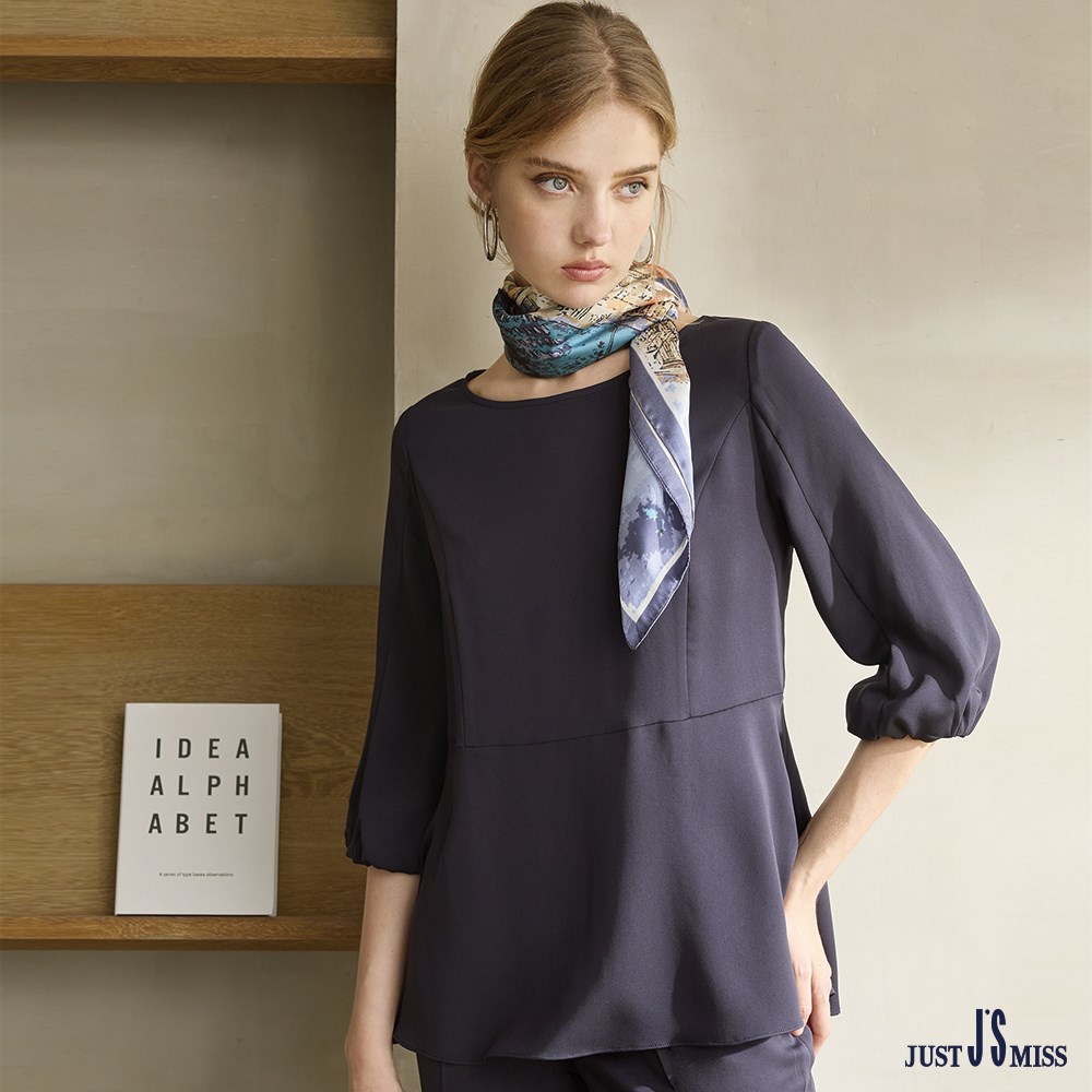 經典素面拼接 七分拋袖圓領上衣