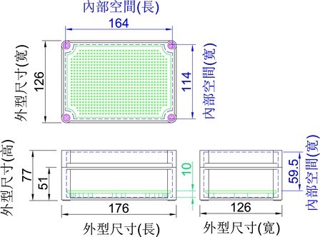 產品規格: 外型尺寸:長176 x 寬126 x 高77 mm 內部空間:長164 x 寬114 x 高59.5 mm