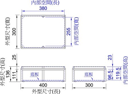 外型尺寸:長400 x 寬300 x 高135.5 mm