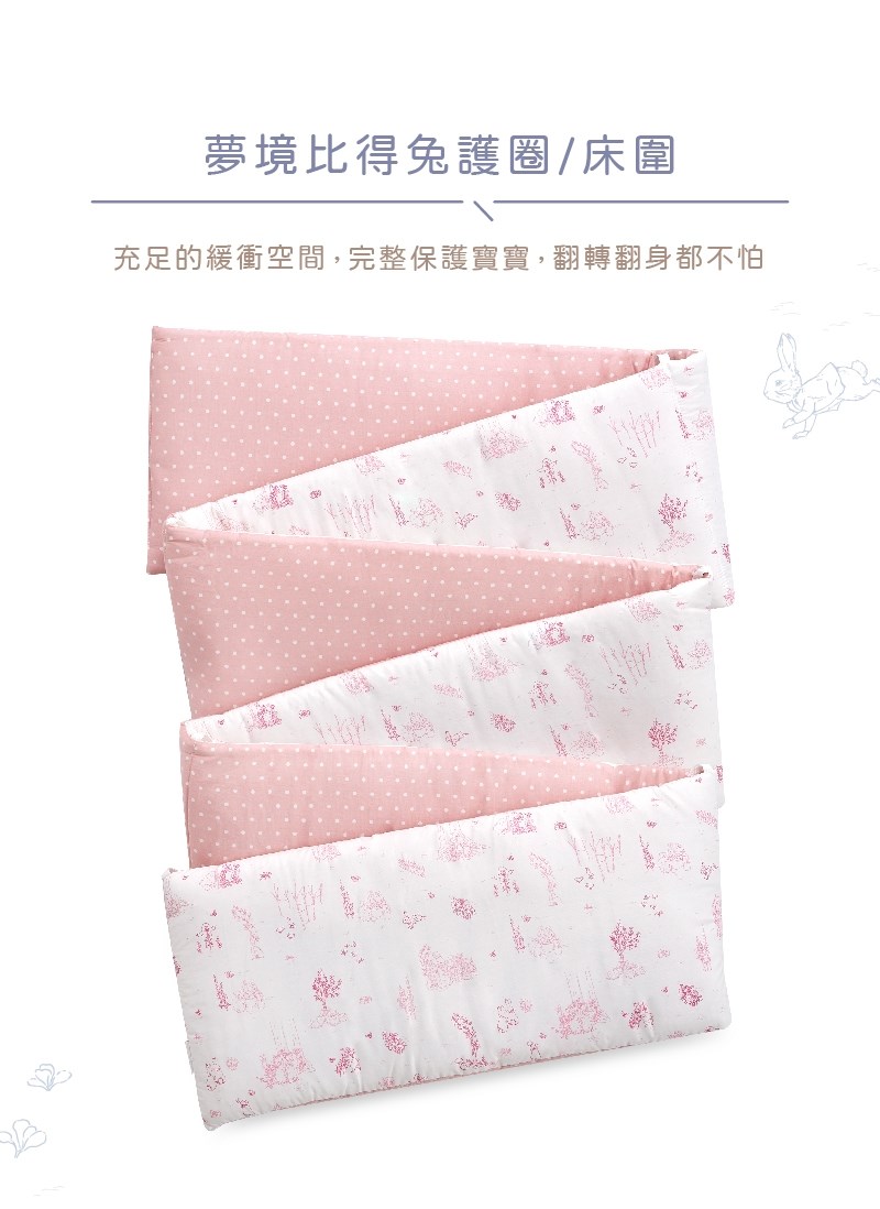 夢境比得兔寢具系列為寶寶嚴選高密度精梳棉面料,搭配典雅圖紋設計,呈現活潑純真氣息,提供寶寶溫馨、舒適的睡眠環境。