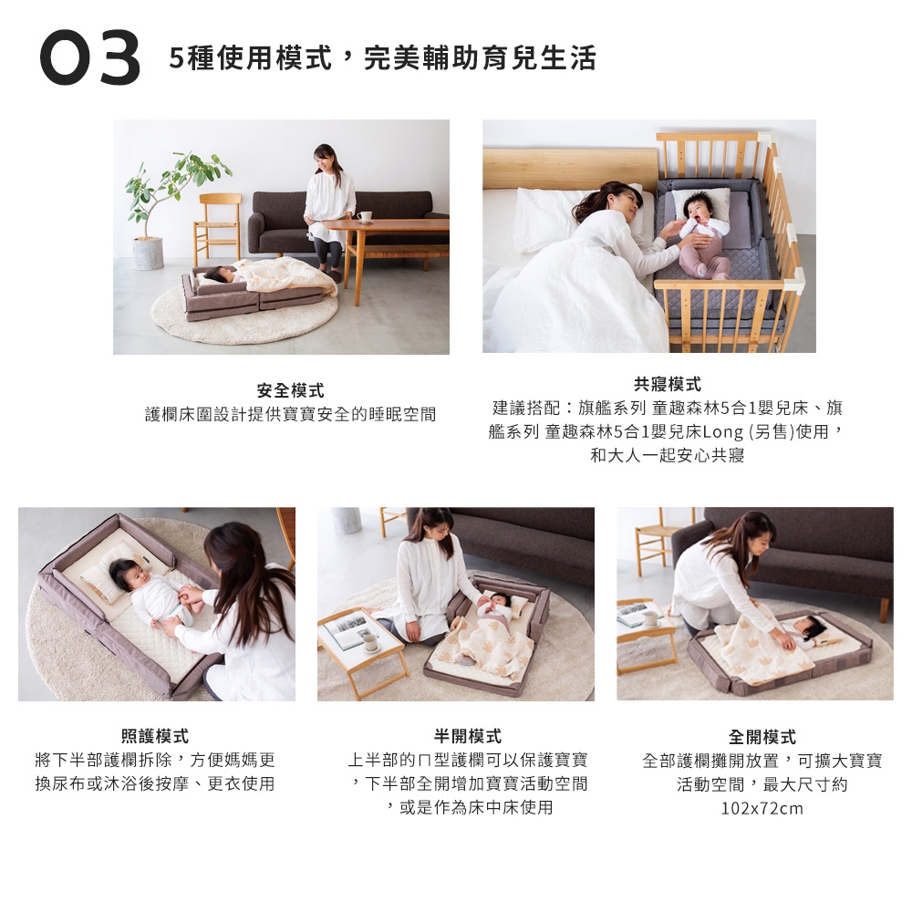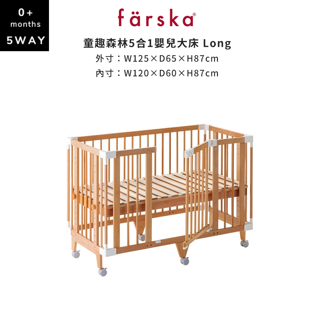 品名:【farska】童趣森林5合1嬰兒大床 Long+透氣好眠可攜式床墊13件組 + 延伸床墊 - 奶油香頌