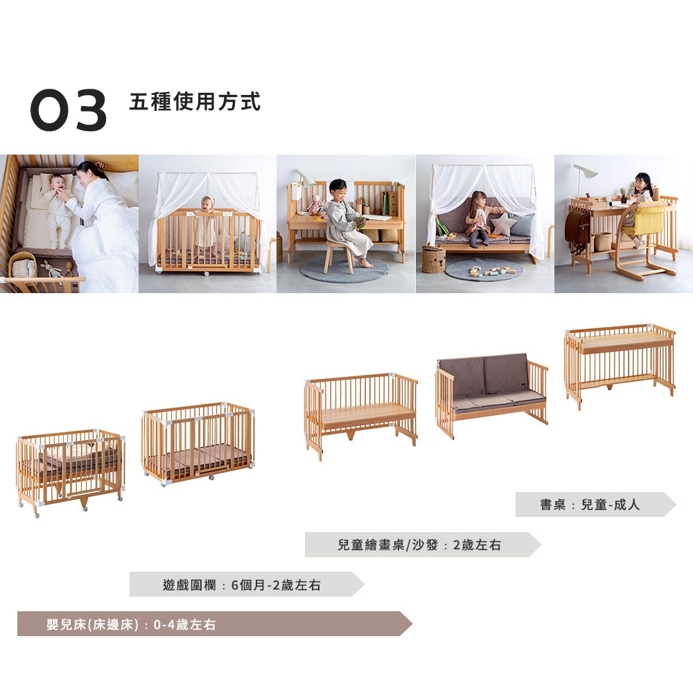 產品重量:嬰兒床33kg、床墊組3.5kg、延伸床墊約1kg
