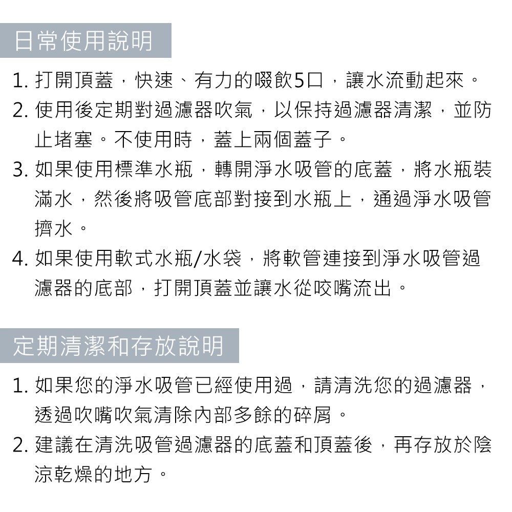- 內含:頂峰生命淨水吸管、英文說明書