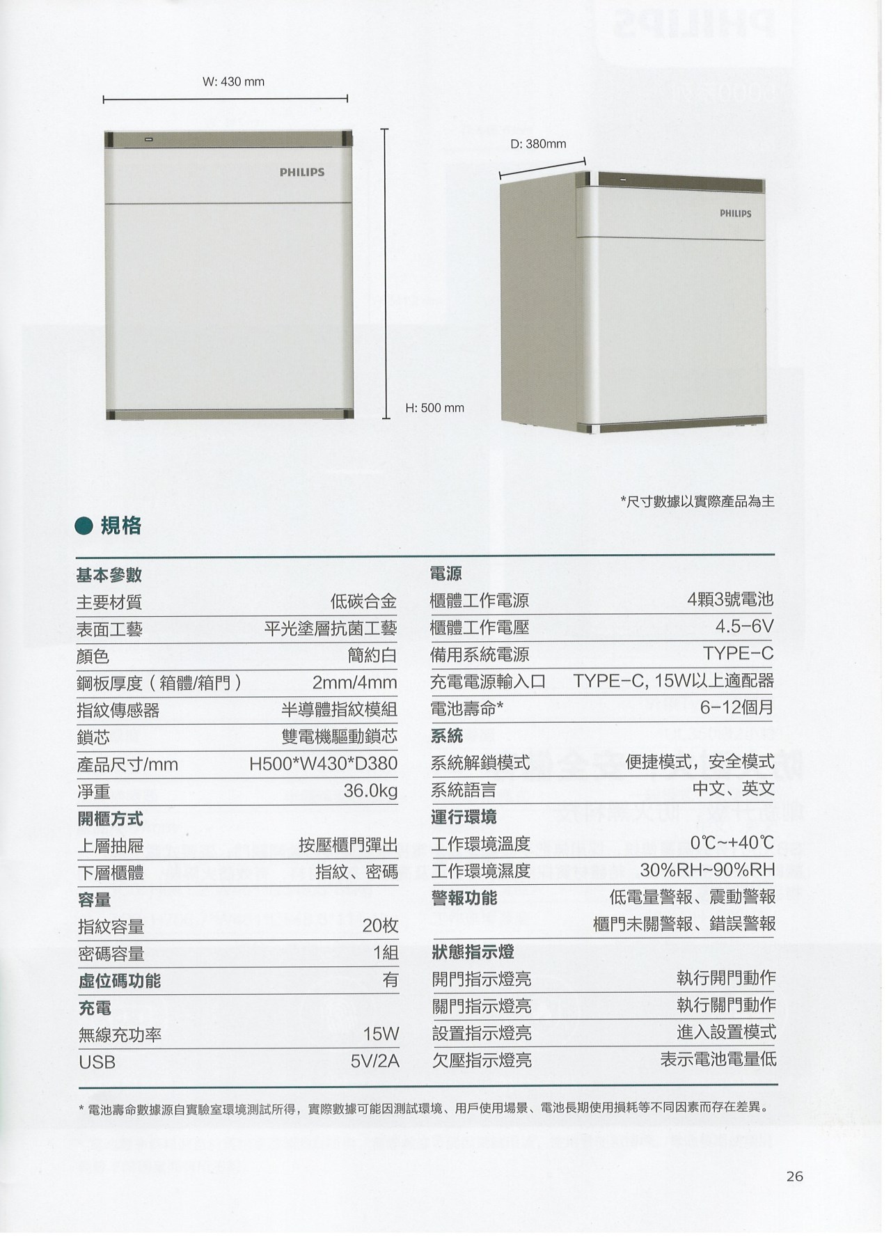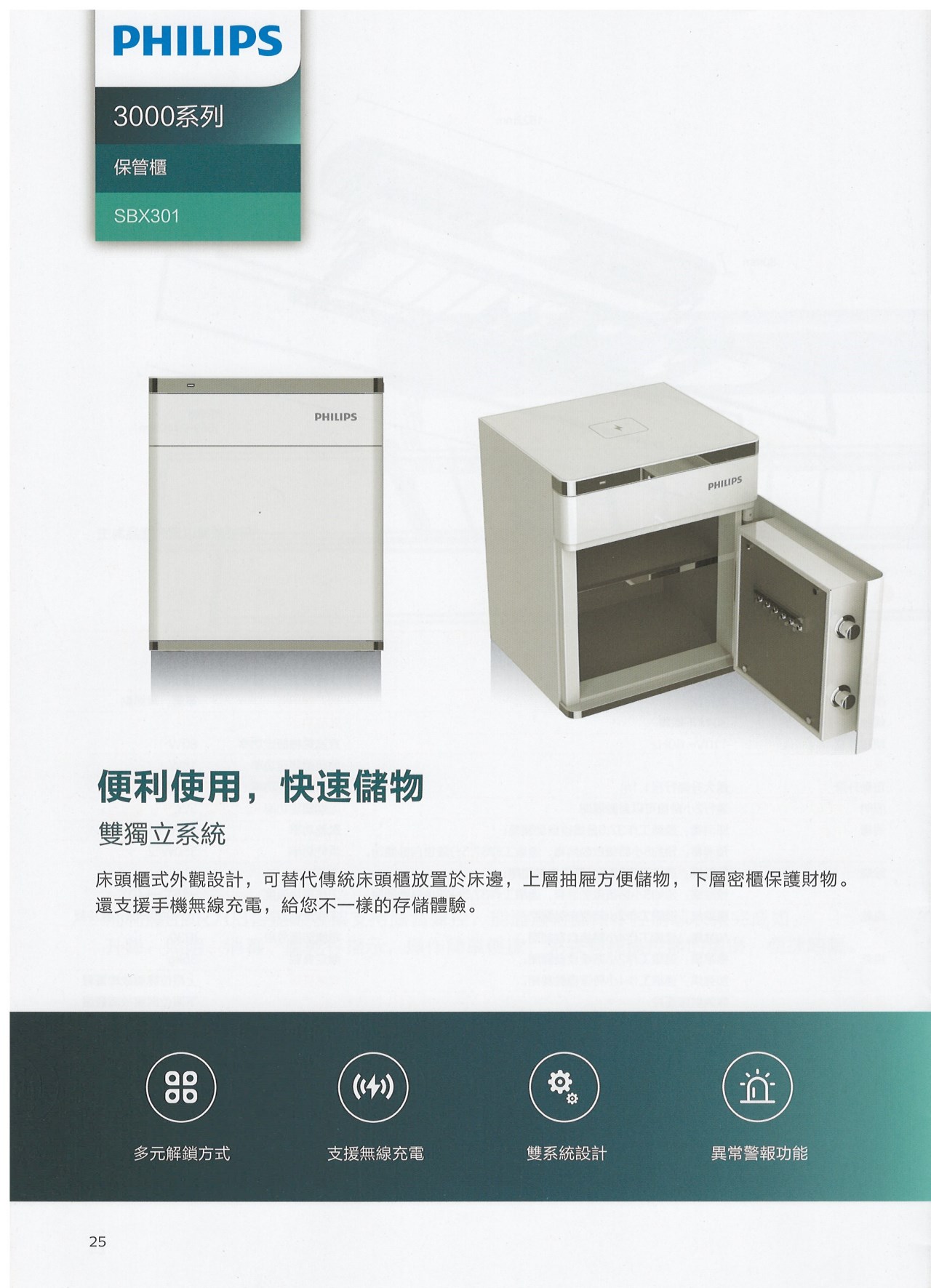 【飛利浦PHILIPS】Smart Safes保險櫃|保管櫃|床頭櫃-SBX301