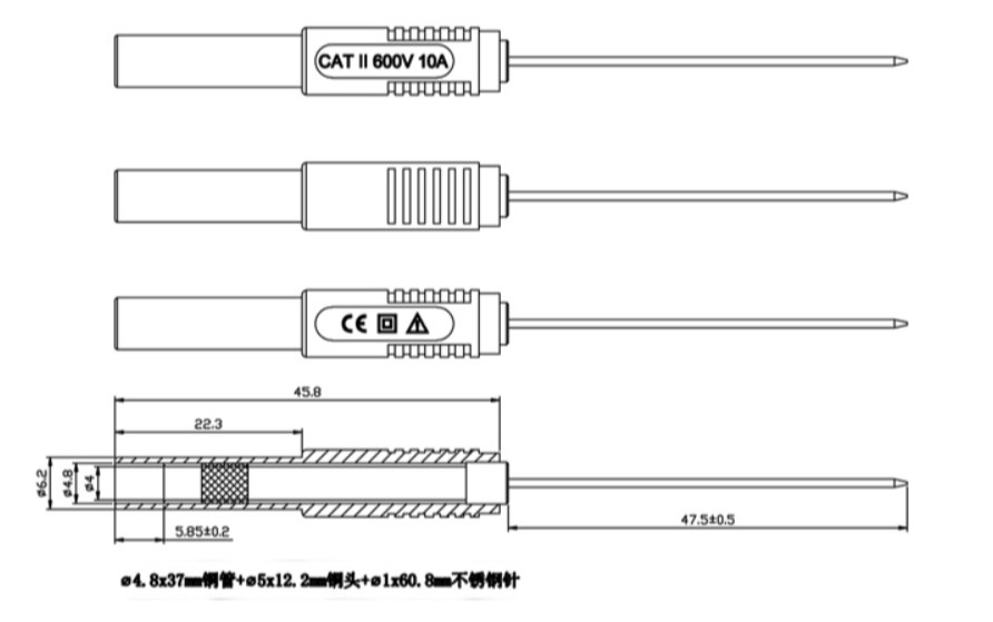 前 端︰1mm不鏽鋼延長探針