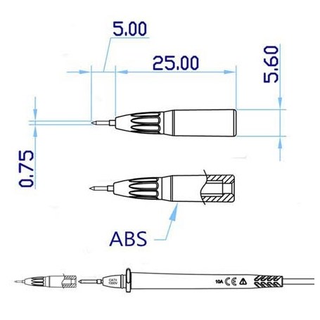 將一般2mm測試探棒轉換成0.75mm伸縮探針使用