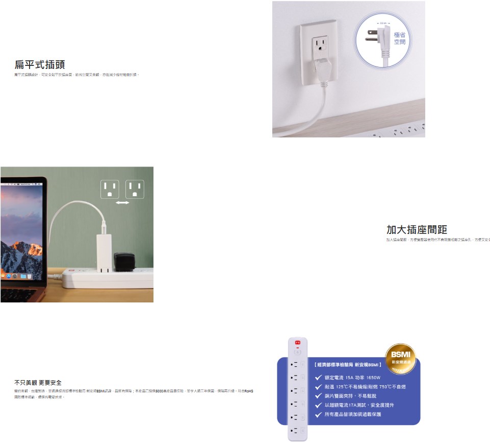 加大插座間距,方便變壓器使用也不會阻擋相鄰之插座孔,方便又安全