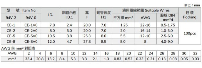平方線mm2:2.0 AWG:16-14 股線DIN:1.0-3.0