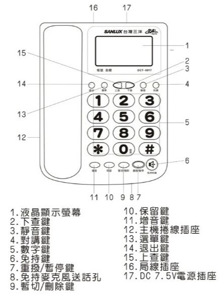 16組和弦鈴聲、2組普通鈴聲 · 來電報號、去電報號 · 助聽電話18dB音量,三段式開關調整(增音1與增音2適用於助聽電話)