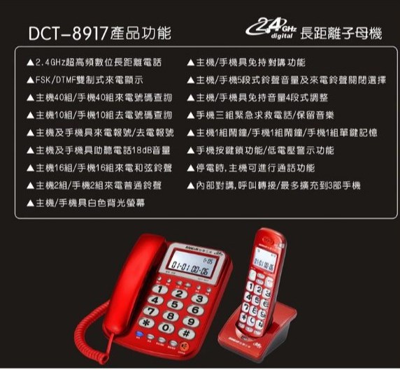 2.4GHz長距離來電顯示子母機
