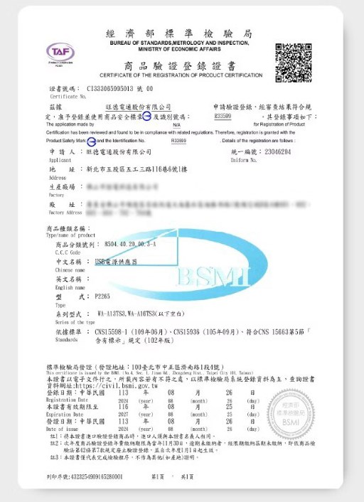 USB-A輸出: 5V⎓3A, 9V⎓2A , 12V⎓1.5A (Max 18W)