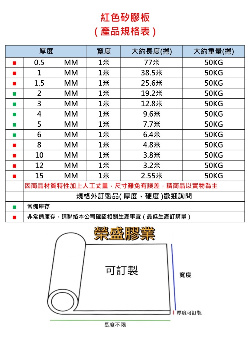 紅色矽膠板尺寸為寬度100公分,可接受委託製造,客製化製作