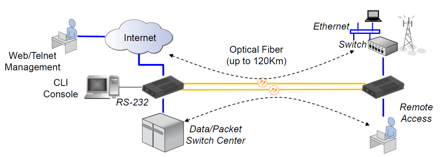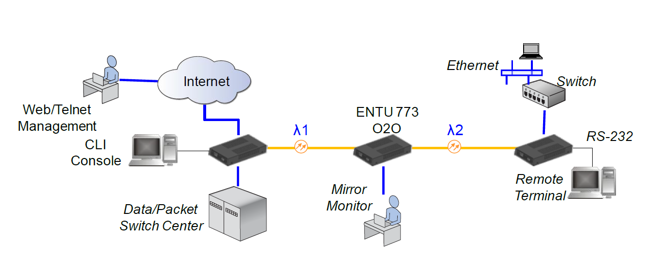 At the customer premise, ENTU783 provides link protection, bandwidth combination and loop prevention. Deploying at the operators’ network, SNMP and RMON feature allows the operators to monitor remotely. As the functions like Q-in-Q, it can separate each user’s traffic while preserving the VLAN tag from the data. Overall, it is an ideal device to act as a demarcation point between the operators and the customers.