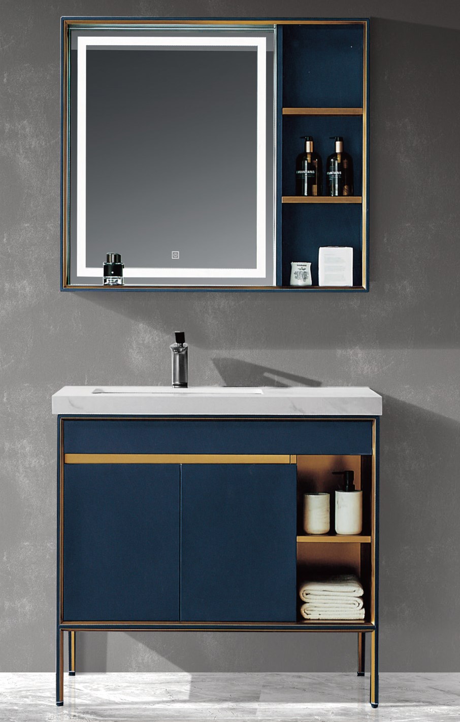 砂面墨藍+拉絲金