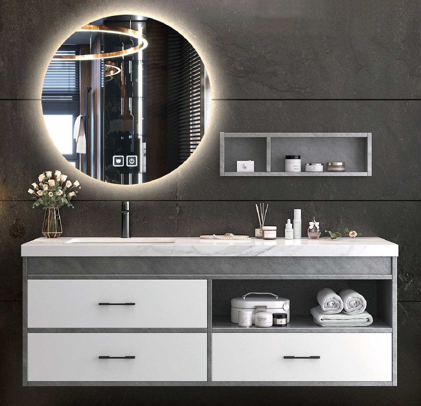 鏡子、主櫃、台面、陶瓷盆、側櫃(不含水龍頭)