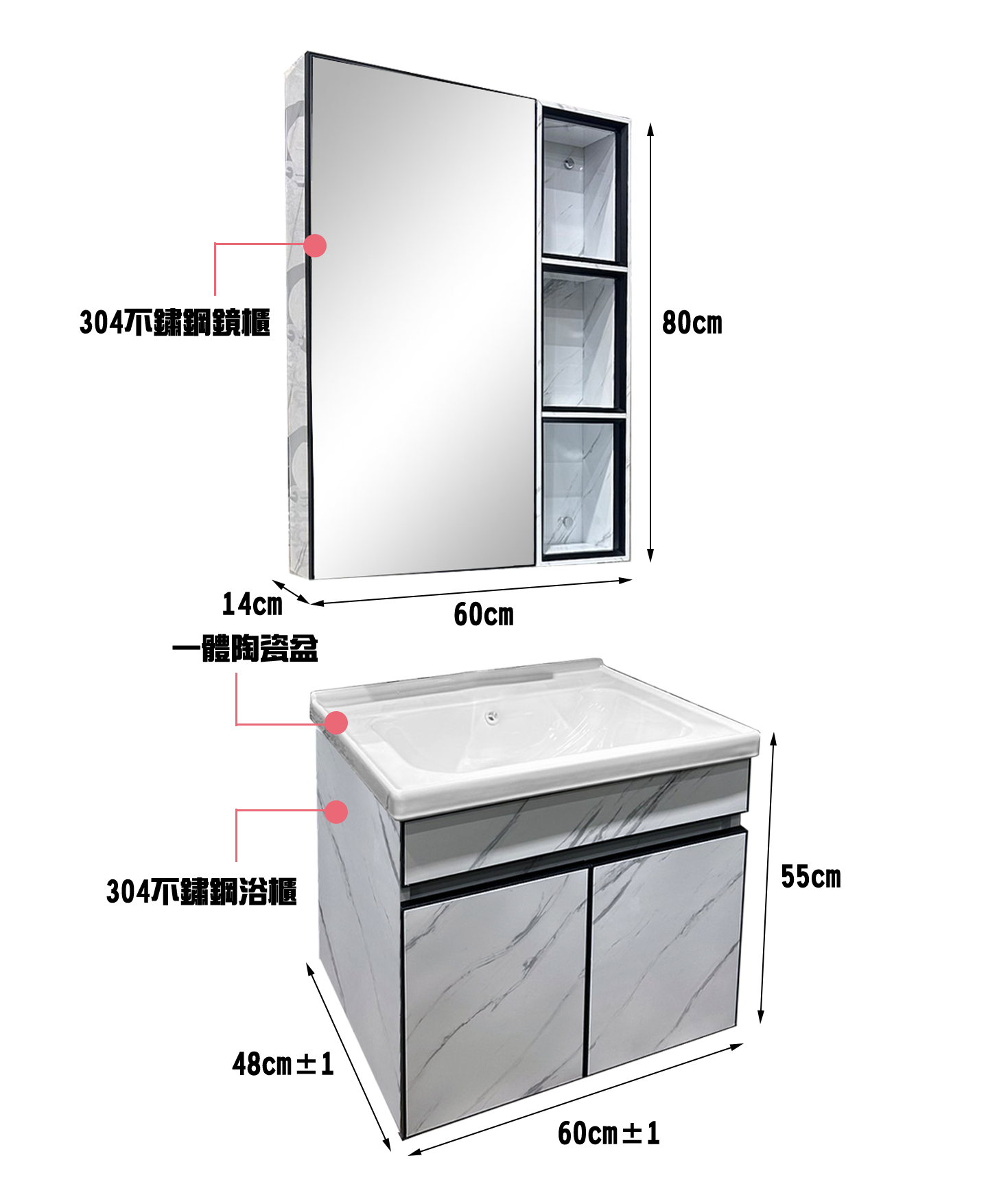 主櫃:600*480*550±10 鏡櫃:600*150*800