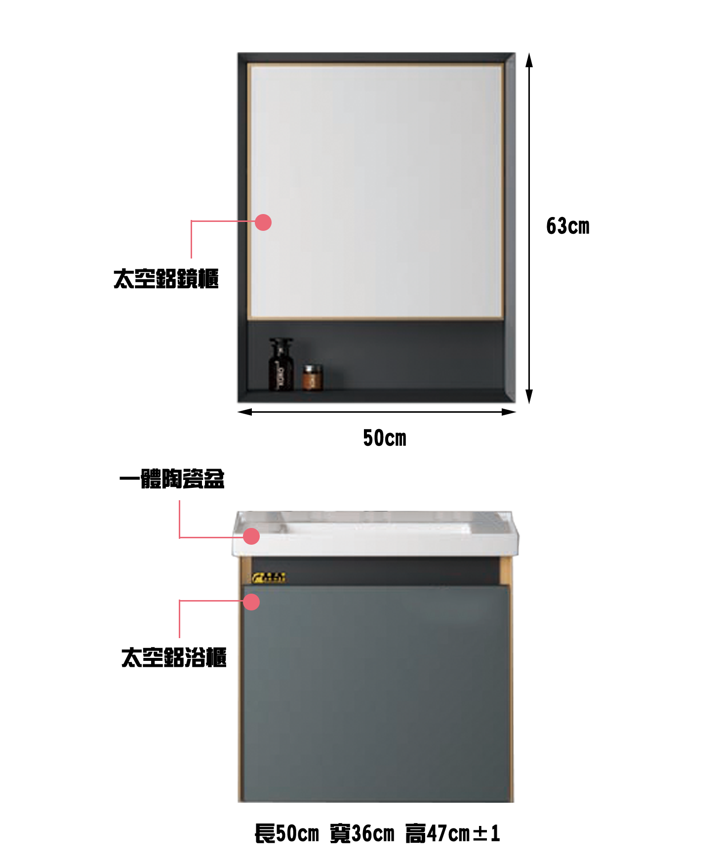 鏡櫃、主櫃、面盆(不含水龍頭)