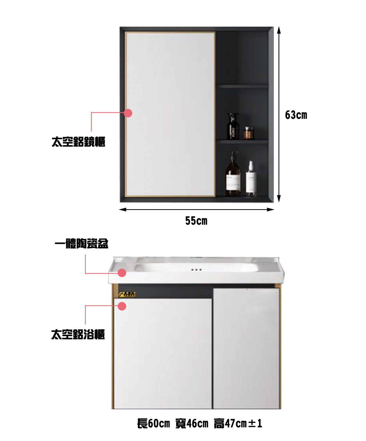 鏡櫃、主櫃、面盆(不含水龍頭)