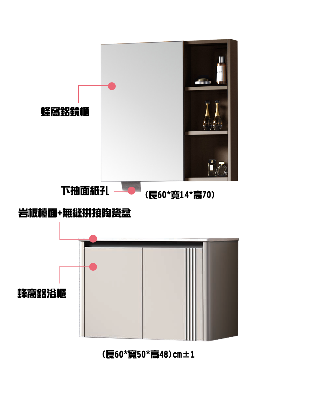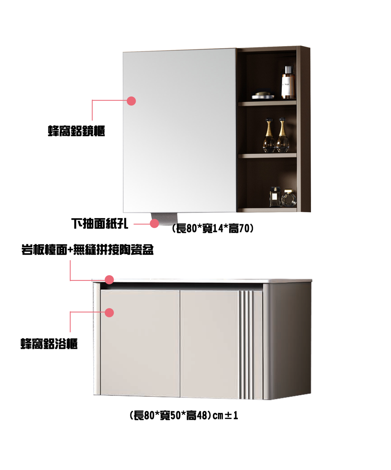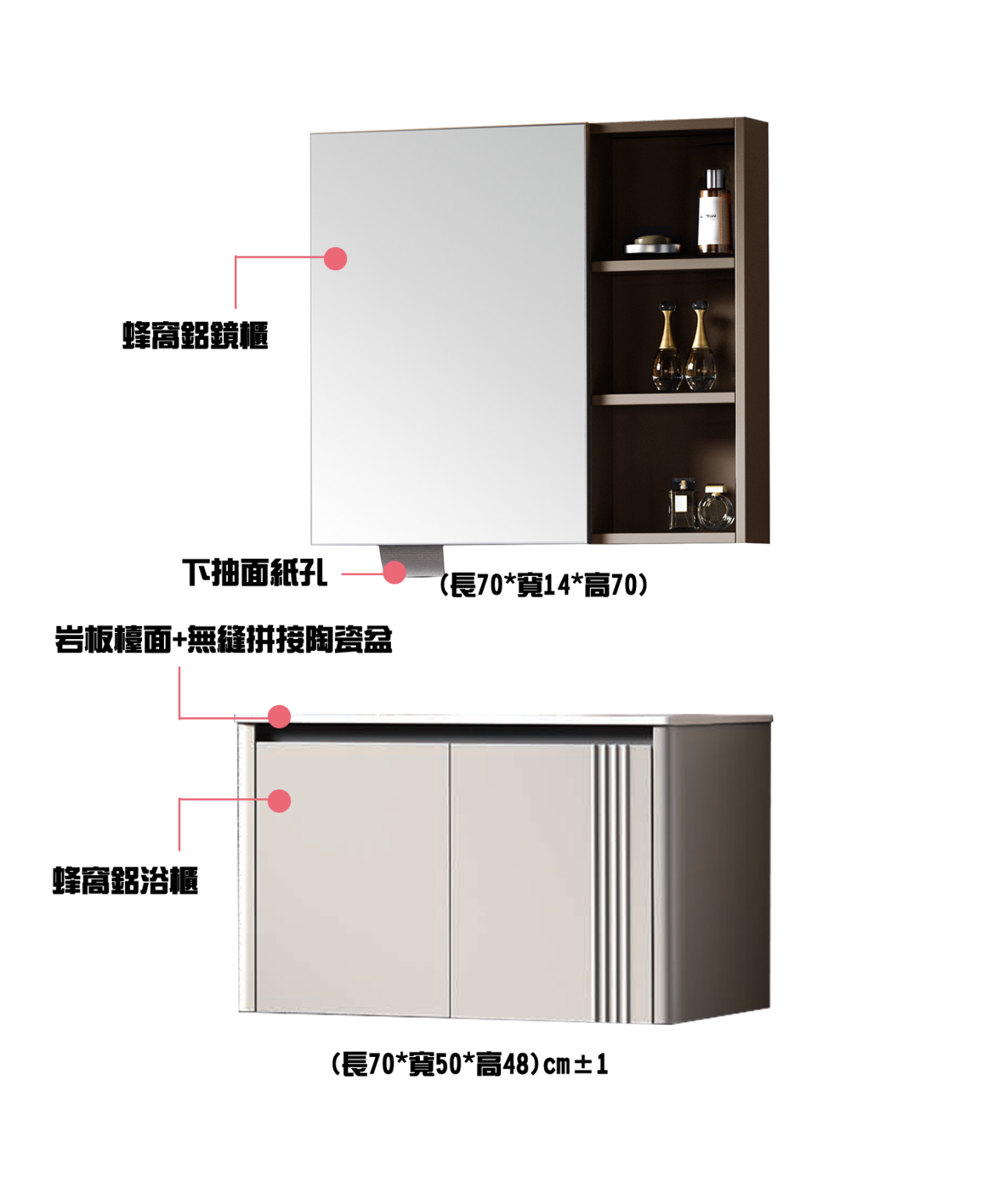 主櫃:600/700/800*500*480 鏡櫃:600/700/800*140*700
